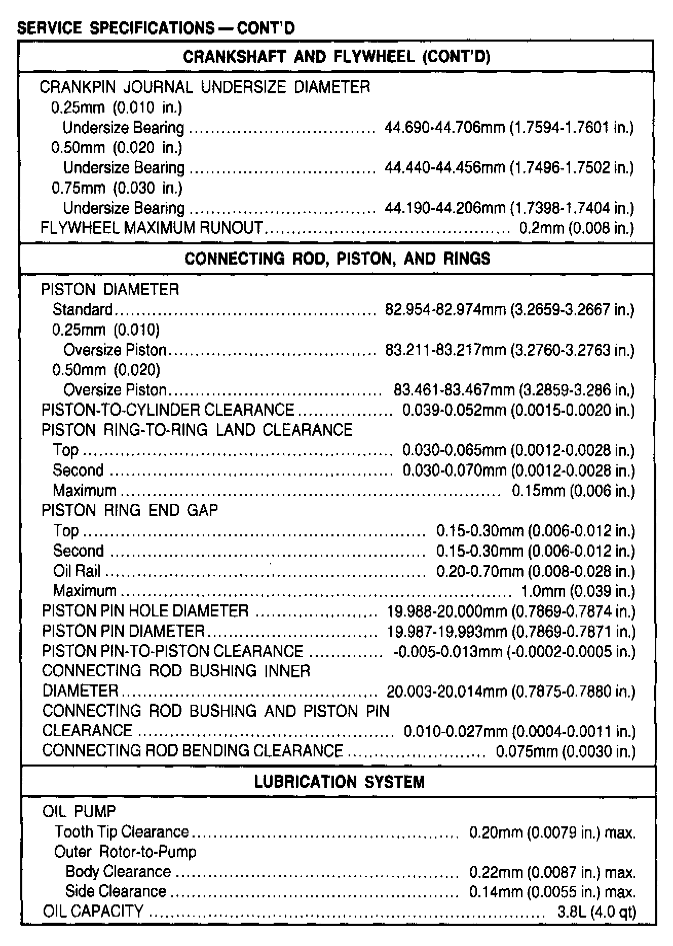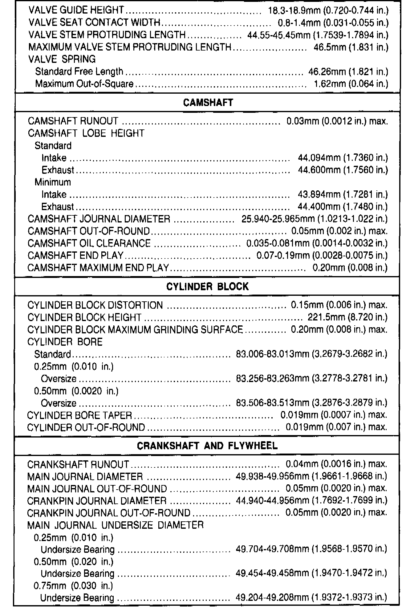 General Engine Specifications