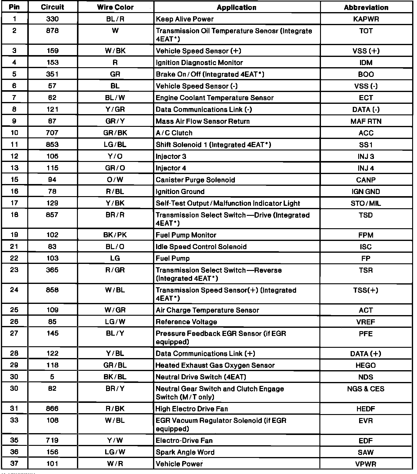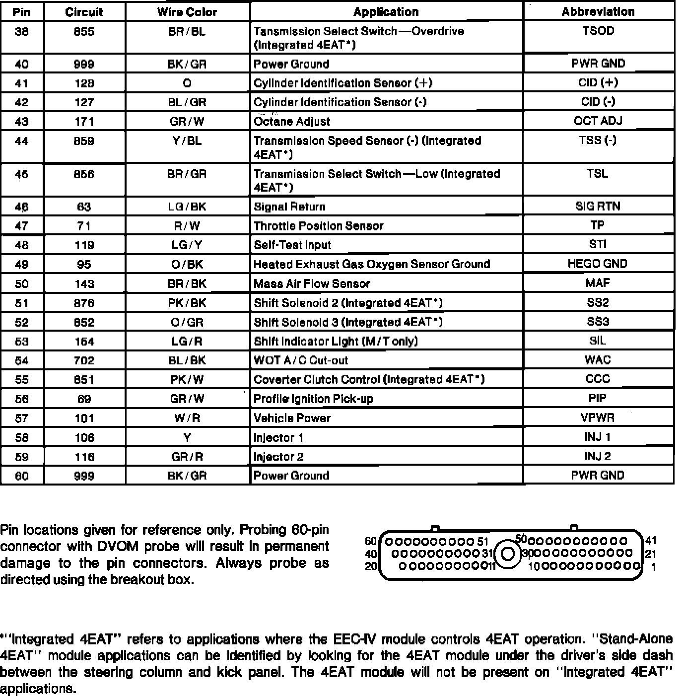 Electronic Engine Controller (EEC) Connector Pinout: