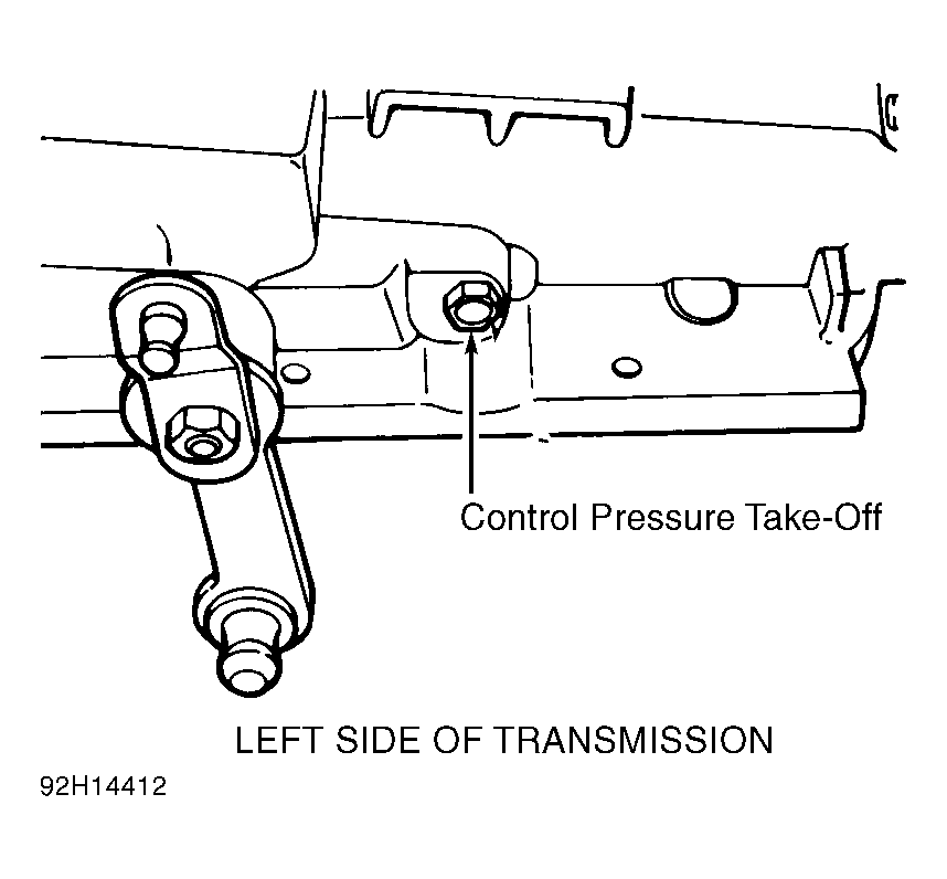 - Connect tachometer to engine. Connect vacuum gauge to manifold vacuum line, using "T" fitting at diaphragm unit. Attach pressure gauge to control pressure take-off located on left side of transmission case. See Fig 1.