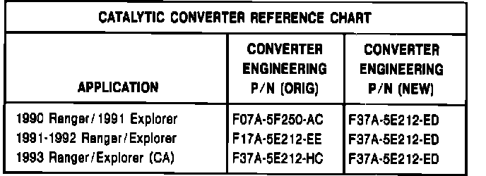 c. a 1990-1992 Ranger (automatic or manual transmission), and if a sulfur smell exists after the vehicle has accumulated 2000 or more miles of service, install a new catalytic converter. Refer to the Catalytic Converter Reference Chart shown. Do NOT replace the EEC IV Processor in these vehicles.