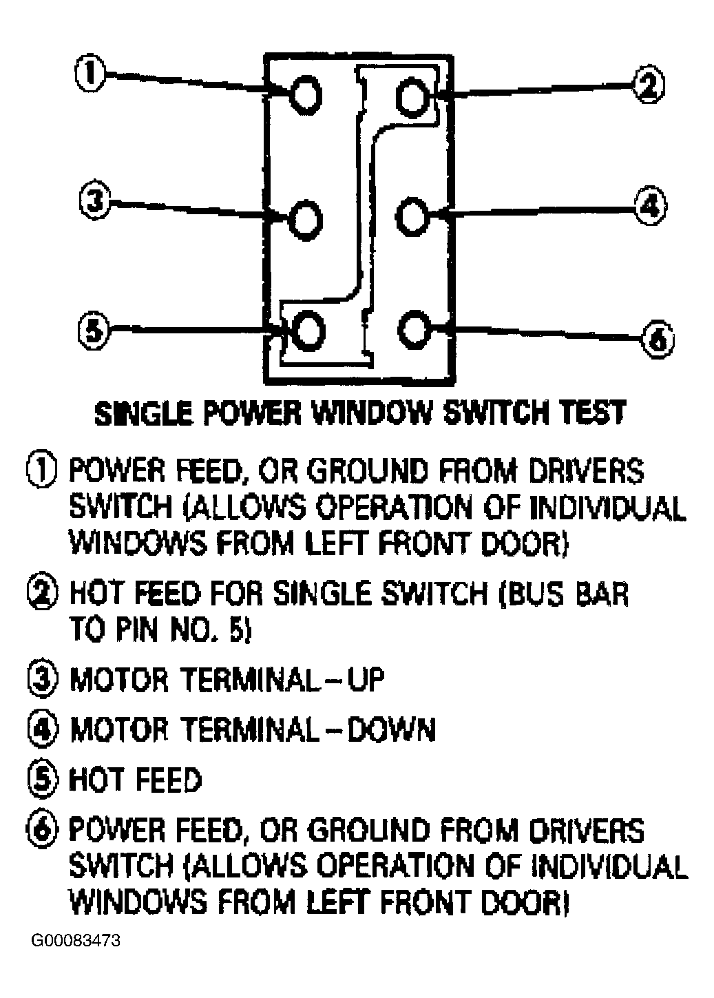 1. Use a self-powered test lamp or an ohmmeter to test the power window switch.