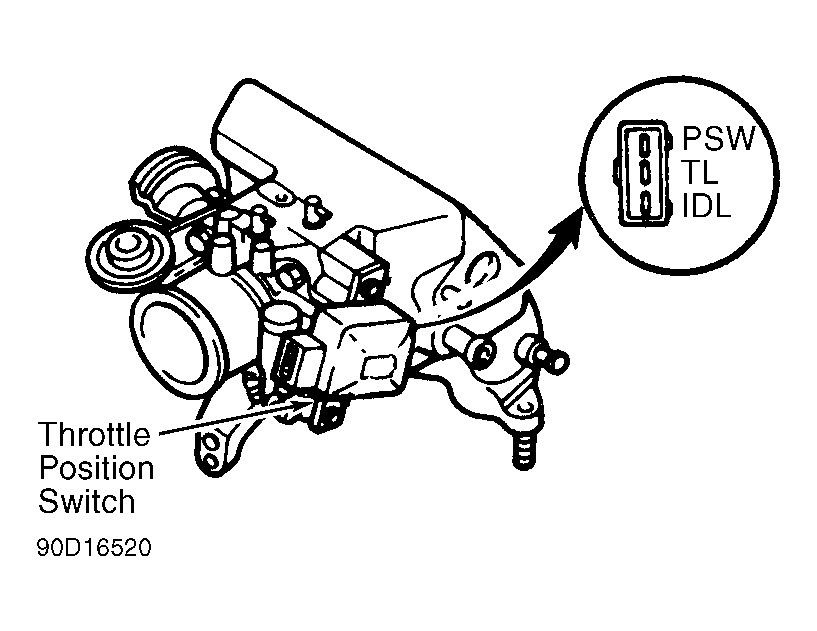 3. To adjust, loosen TP switch attaching screws. Connect ohmmeter between terminals IDL and TL. See Fig 1 . Insert a .020" (.5 mm) feeler gauge between throttle stop screw and stop lever.