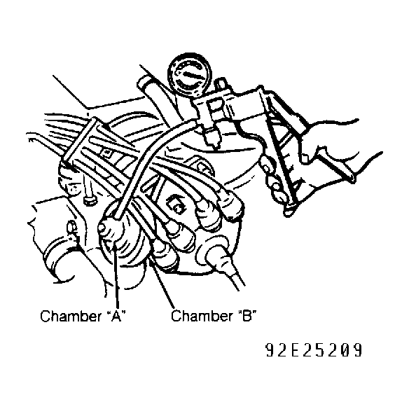 - On non-turbo models, apply 16 in. Hg vacuum to chamber "A". See Fig 1
