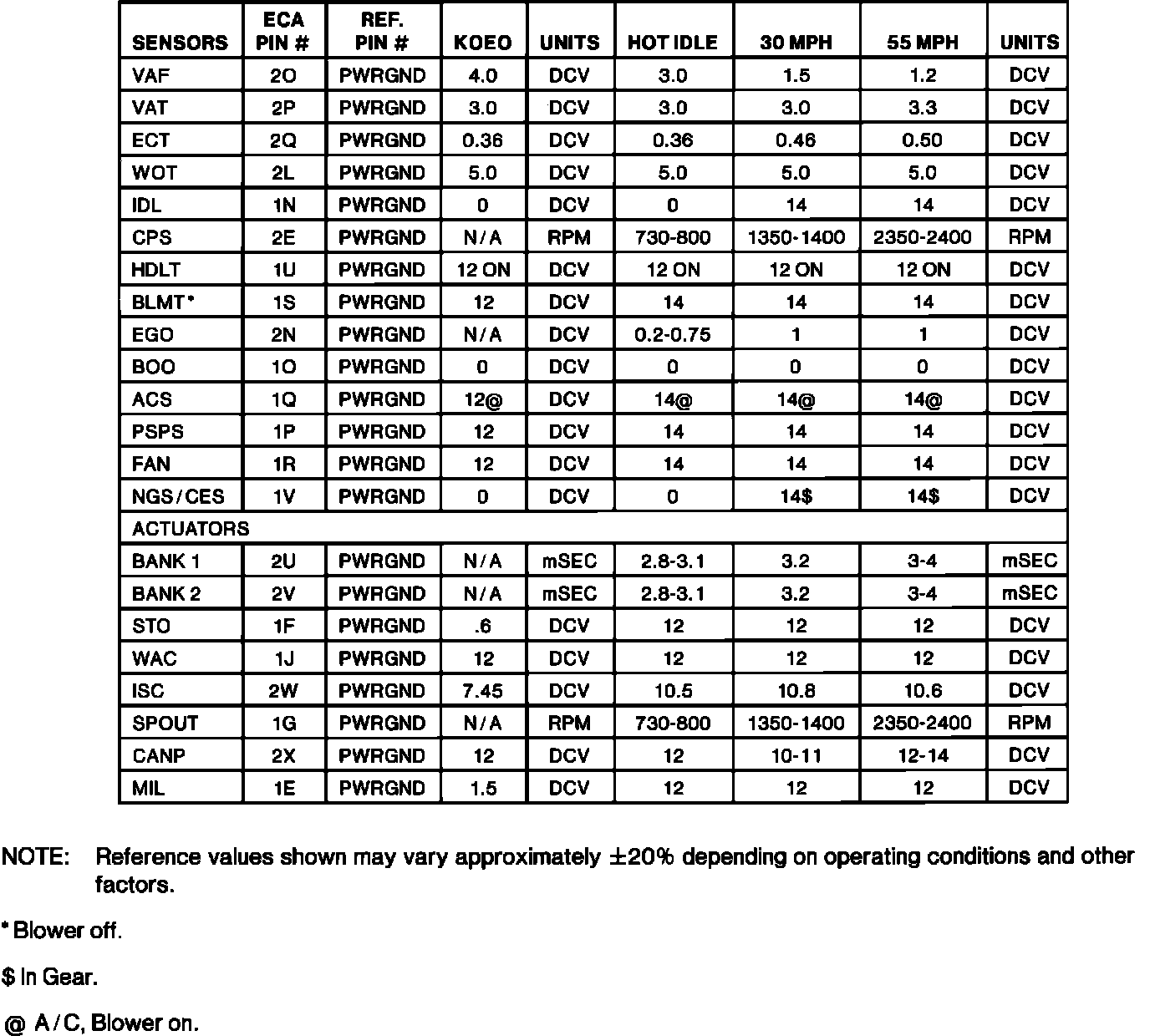 Normal Scan Data Values (Includes PID's)