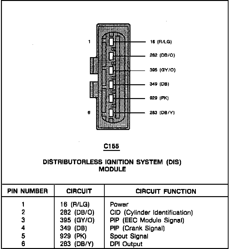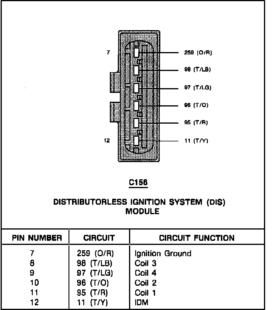 Distributorless Ignition (DIS) System Module Connector Pinout: