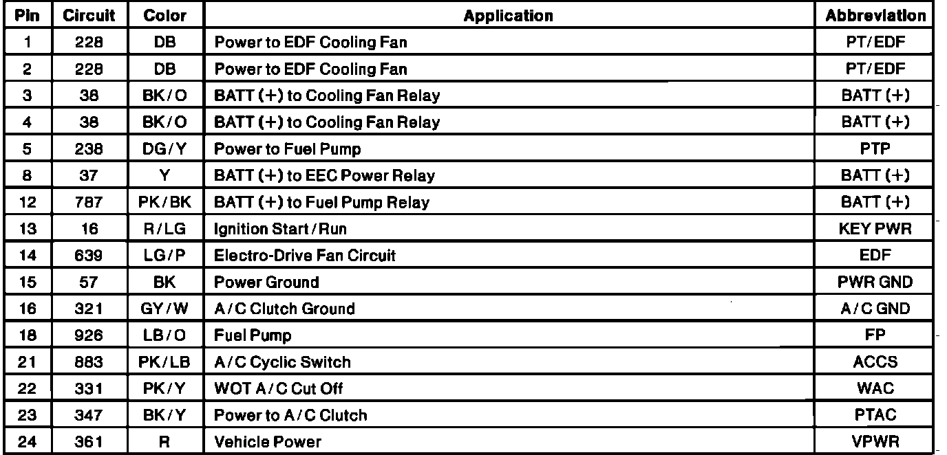 Intergrated Relay Control Module (IRCM) Pinout: