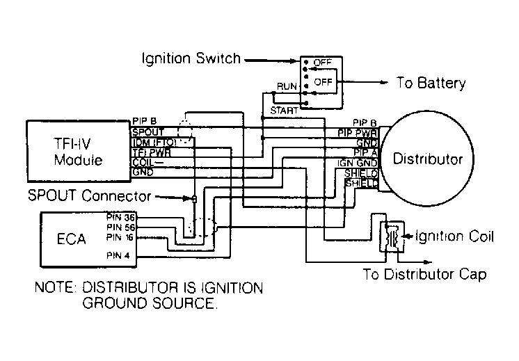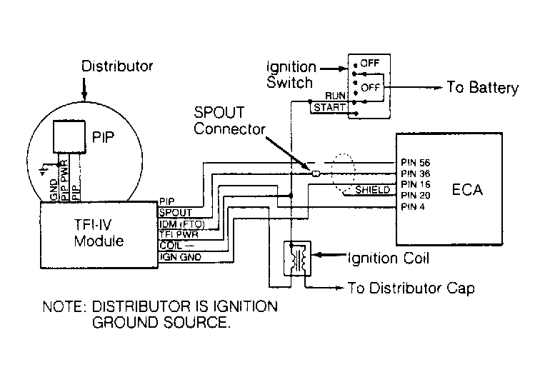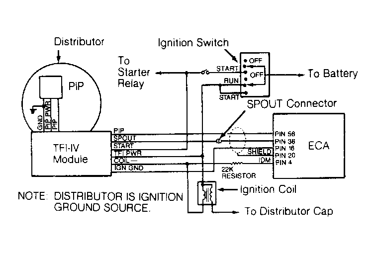 - If a consistent Blue spark is present at coil wire during cranking, inspect distributor cap and rotor for cracks or carbon tracking. Service as necessary and test spark output at spark plugs. If spark is present at spark plugs and engine will not start, go to TESTS W/O CODES