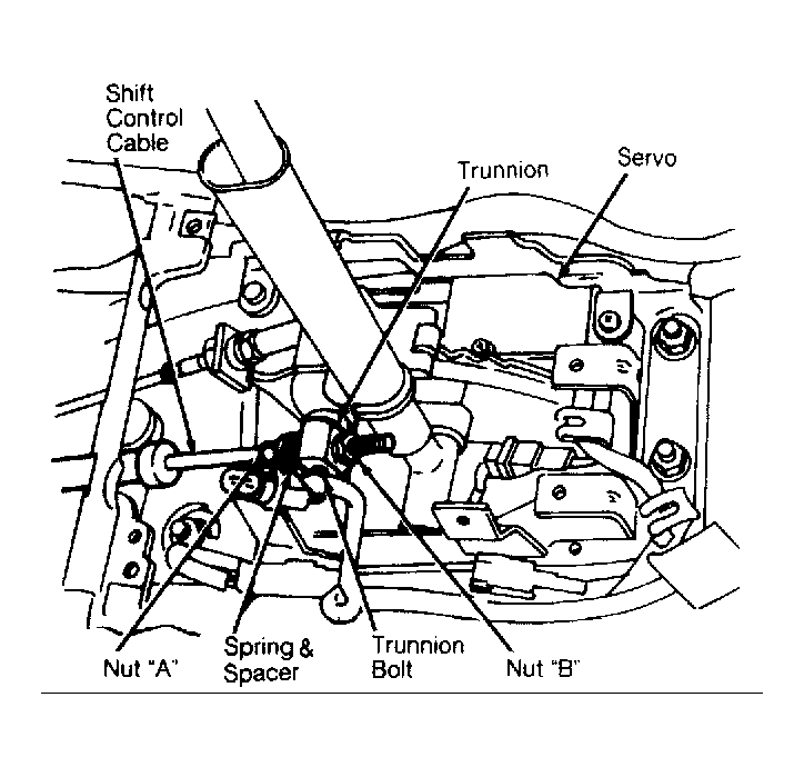 - Tighten cable lock nut "A" by hand until it contacts spring and spacer, and then tighten an additional 1/2 turn. Tighten trunnion bolt to 67-96 INCH lbs. (8-11 N.m). Tighten cable lock nut "B" to 67-96 INCH lbs. (8-11 N.m). To install components, reverse removal procedure.