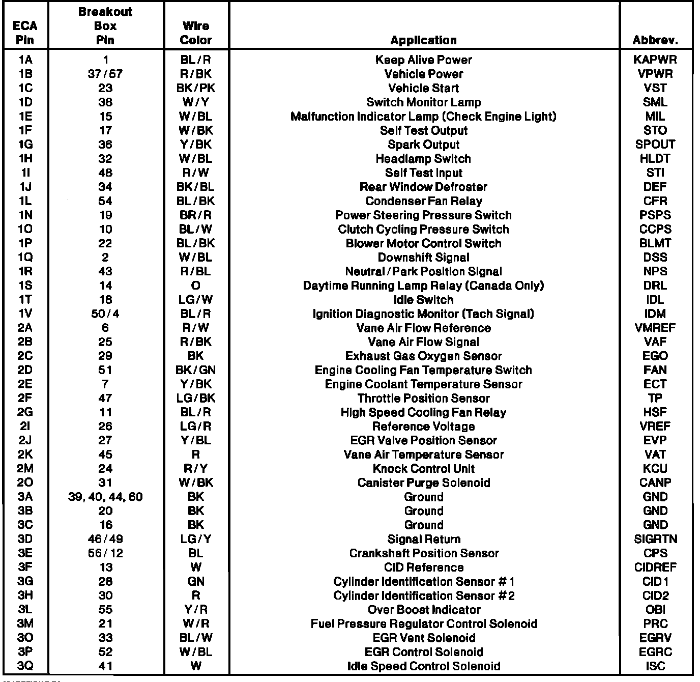 Electronic Control Assembly Connector Pinout: