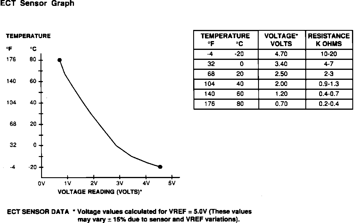 Engine Coolant Temperature (ECT) Sensor Data Chart: