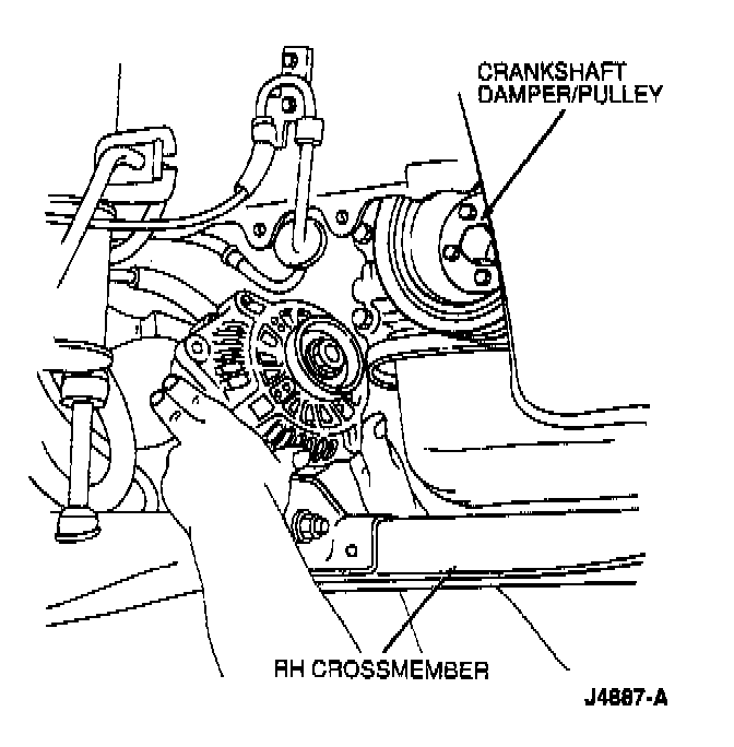 NOTE: Tighten the alternator adjustment jack screw until the total drive belt deflection is as specified with a force of 98N (221b).