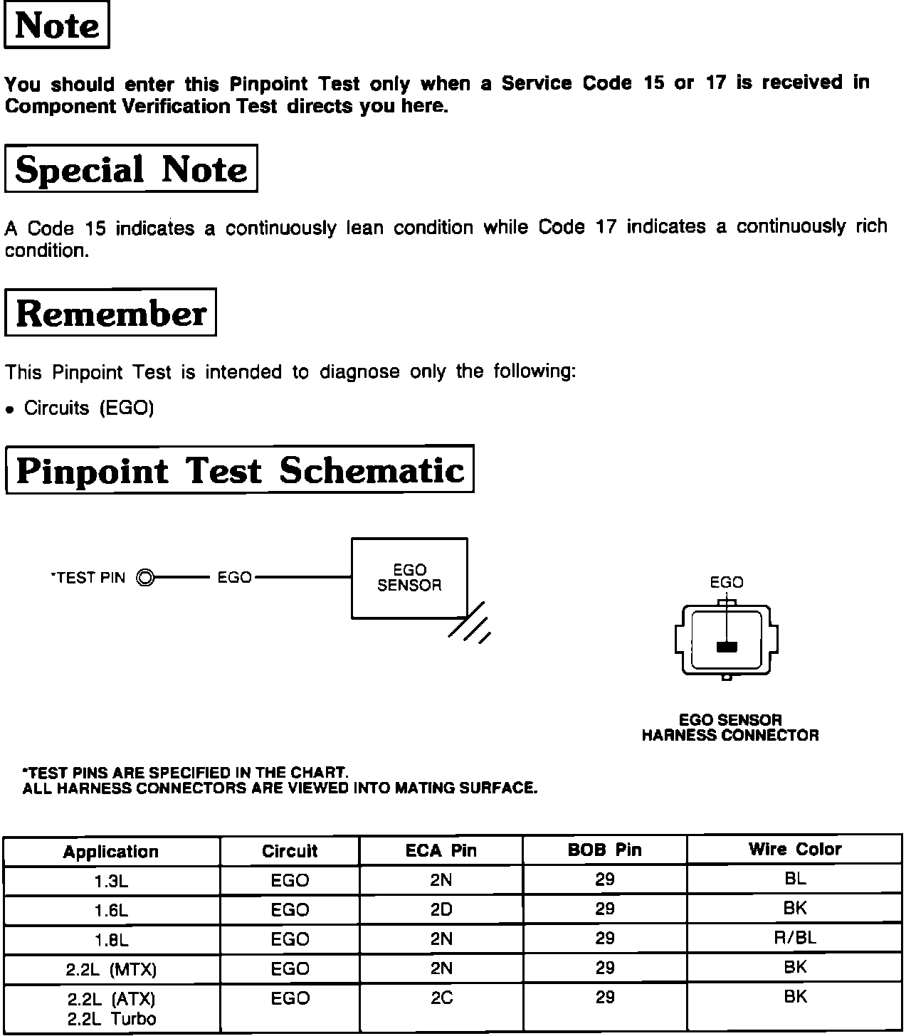 Pinpoint Test EGO Testing Notes And Test Schematic:
