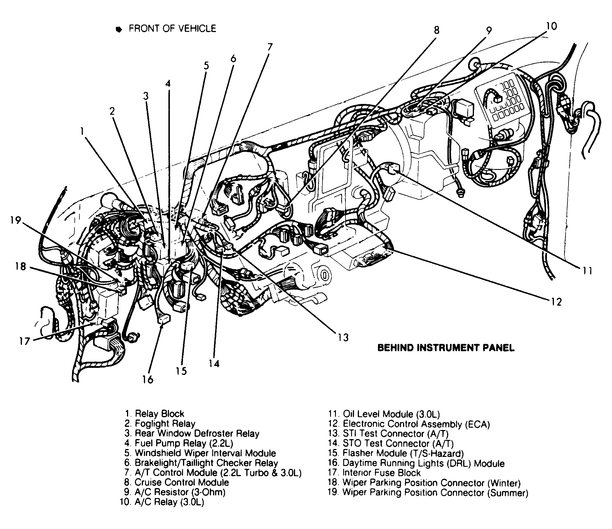 2.2L Turbo & 3.0L (4EAT) Behind instrument panel, to left of steering column. See Figure .