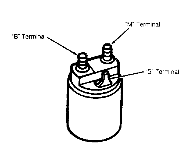 Check for continuity between terminals "S" and "M". If there is no continuity, replace solenoid. Connect one ohmmeter probe to solenoid body and other probe to terminal "S". Replace solenoid if there is no continuity. See Fig 1 . Connect ohmmeter probes between terminals "M" and "B". Replace solenoid if continuity is indicated.