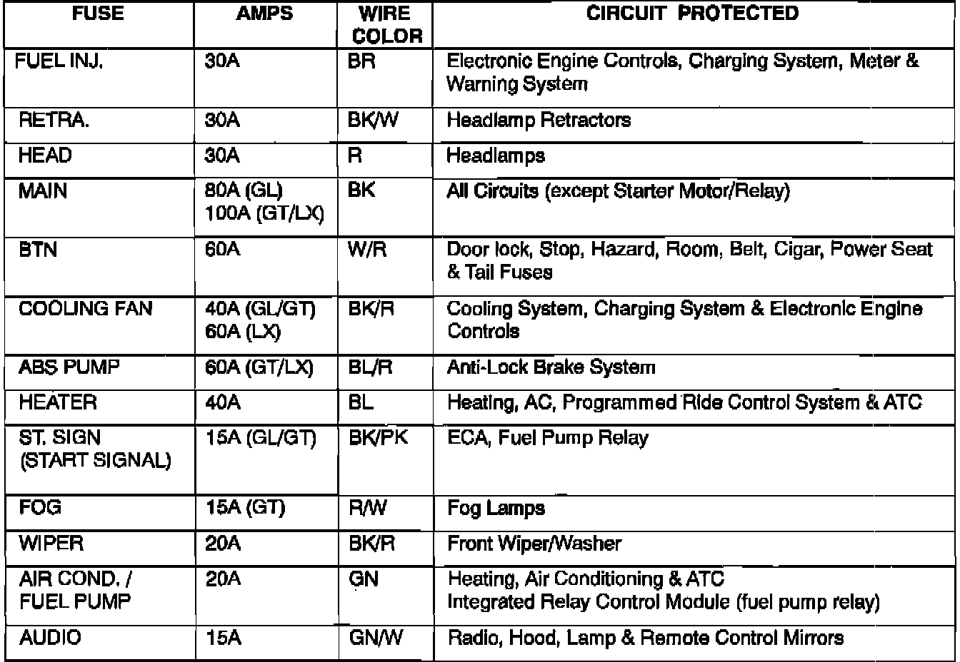 Main Fuse Panel: