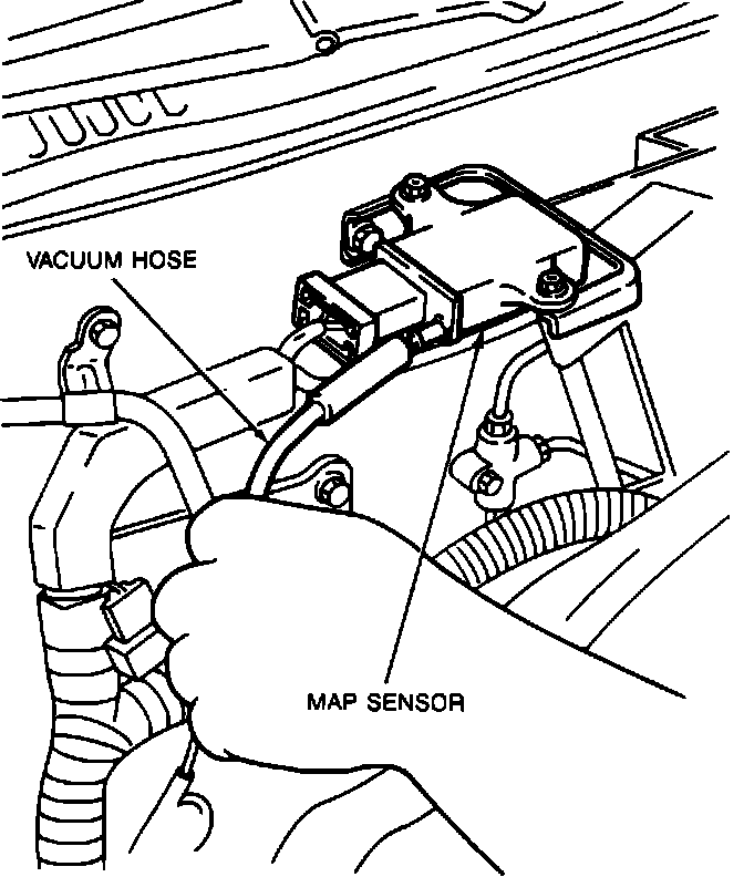 1. Disconnect the vacuum hose and electrical connector from the Manifold Absolute Pressure (MAP) sensor.