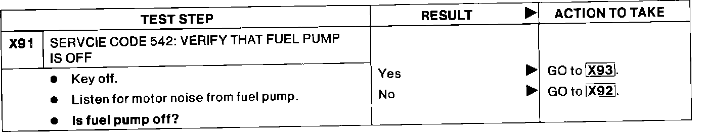 X91 - Service Code 542: Verify That Fuel Pump Is Off