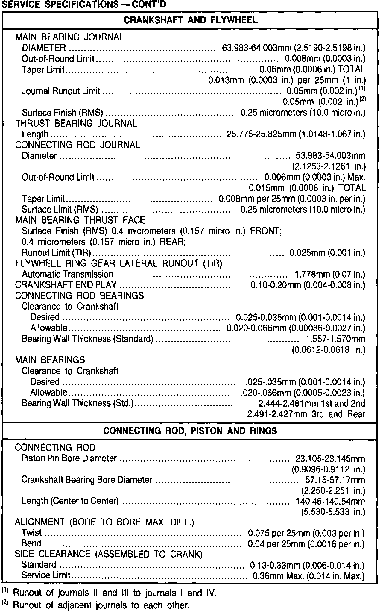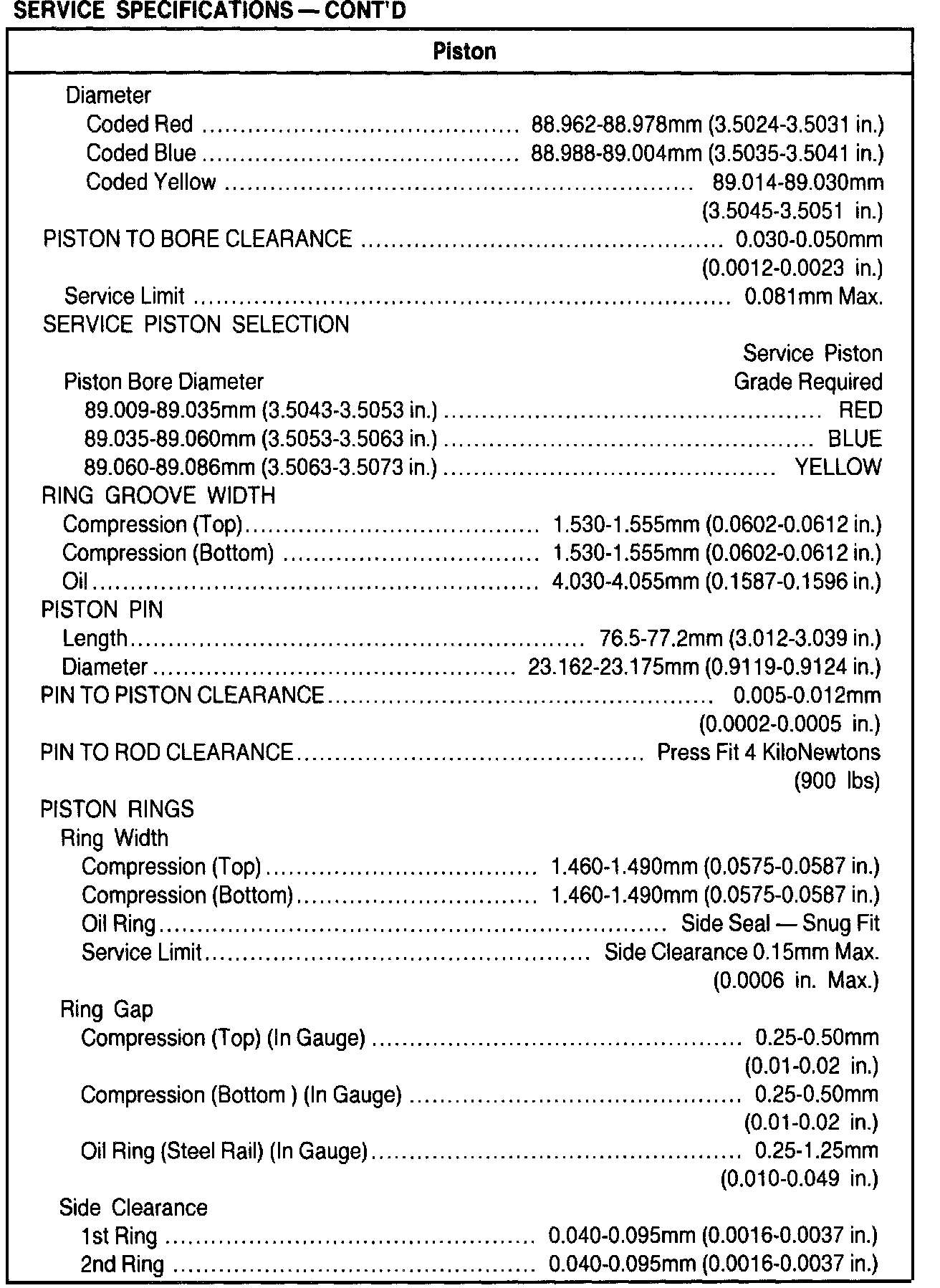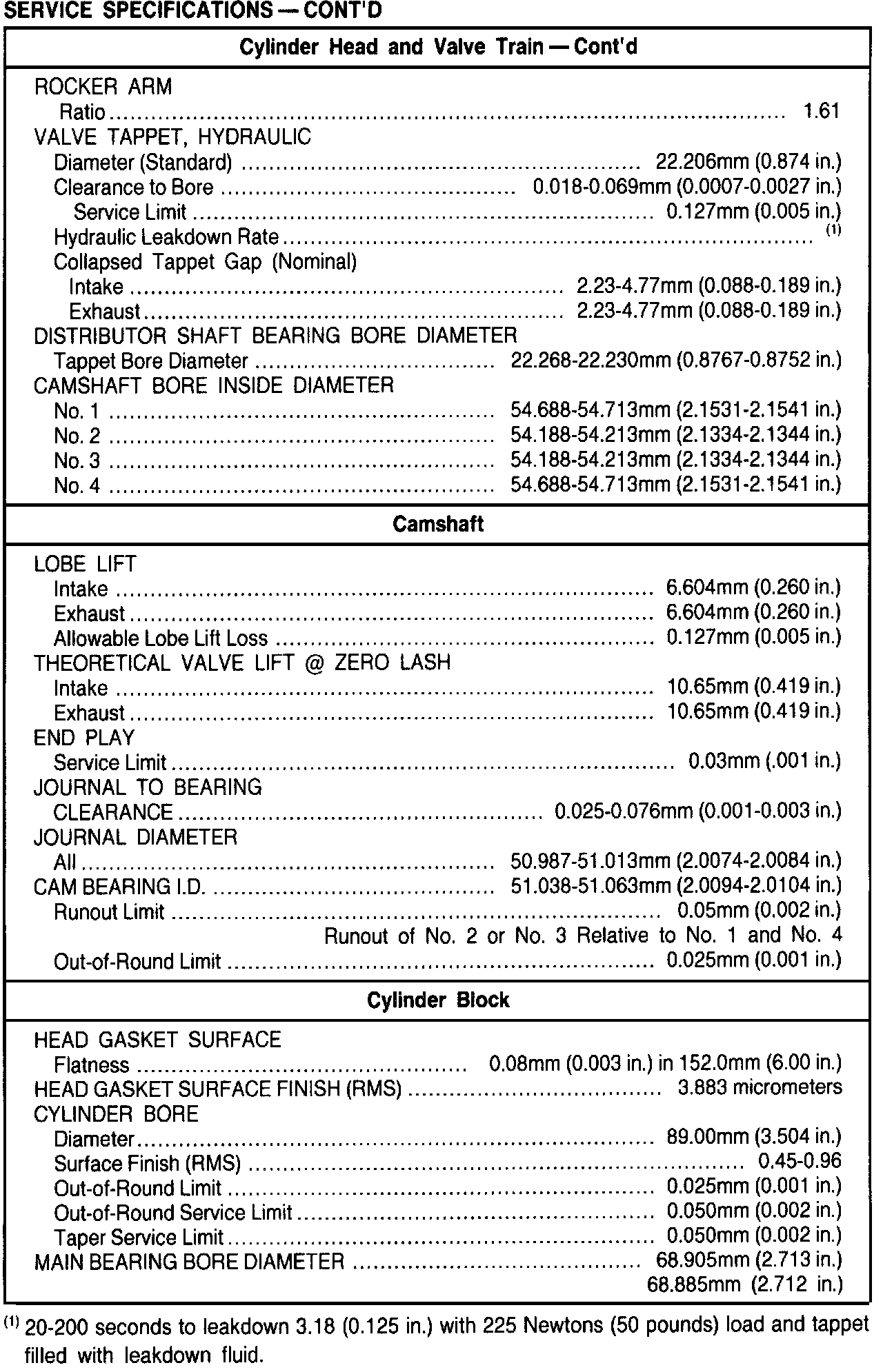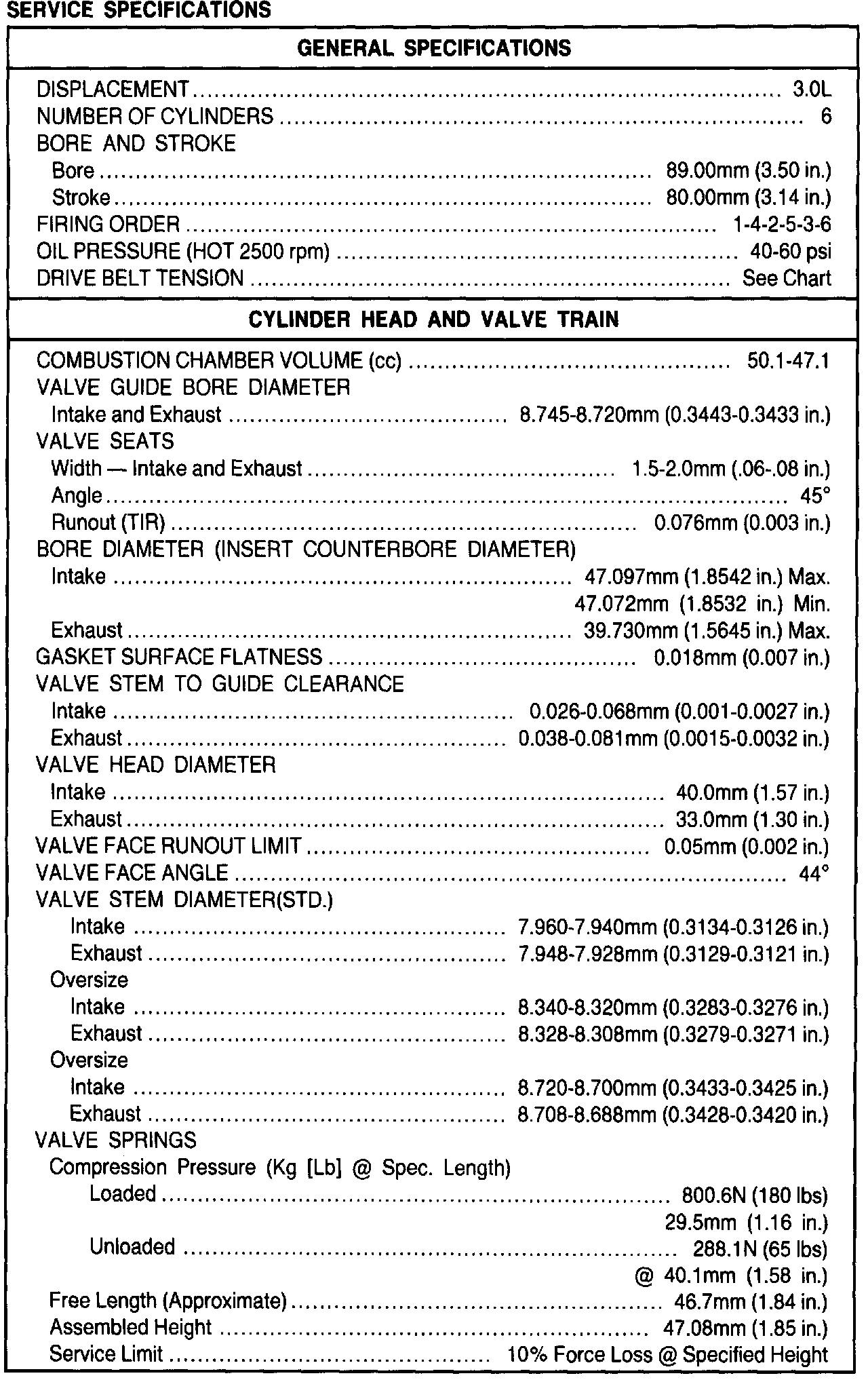 General Engine Specifications