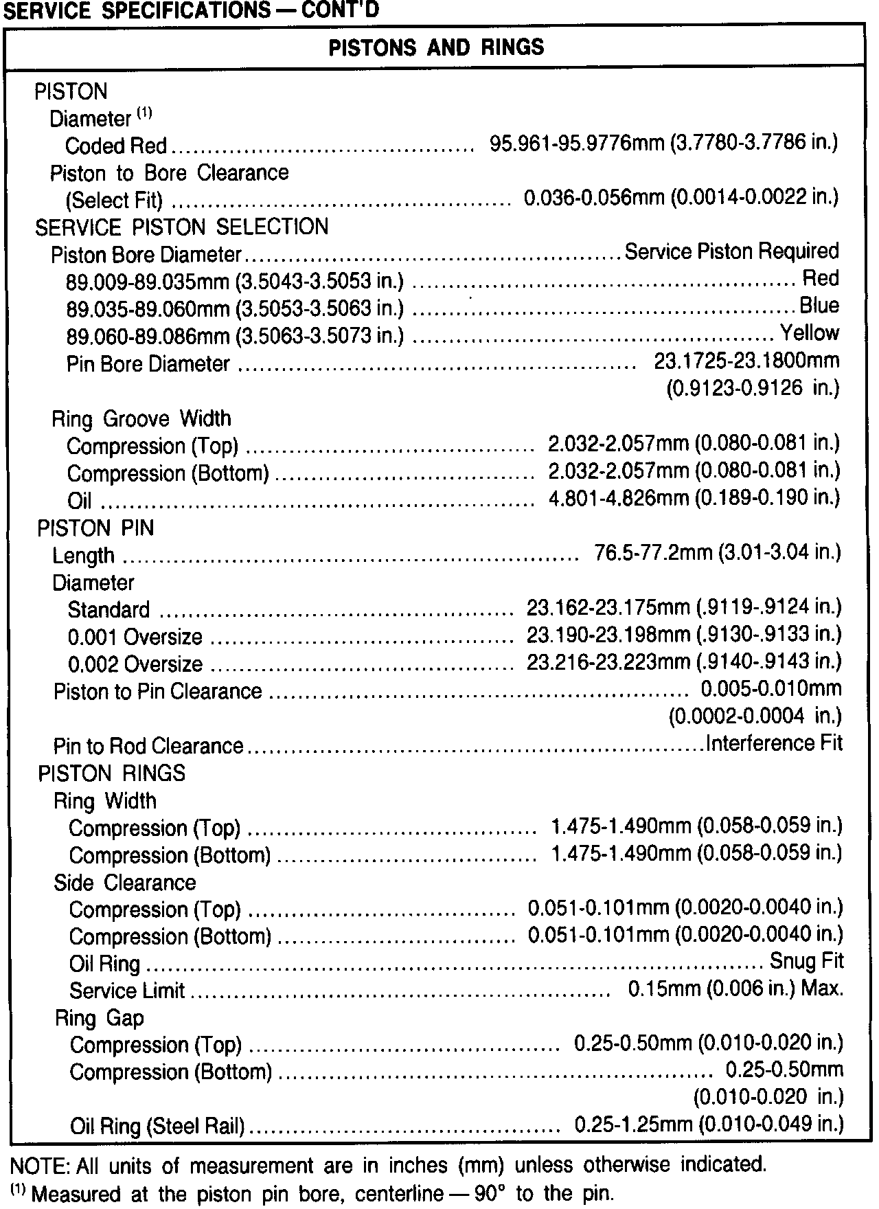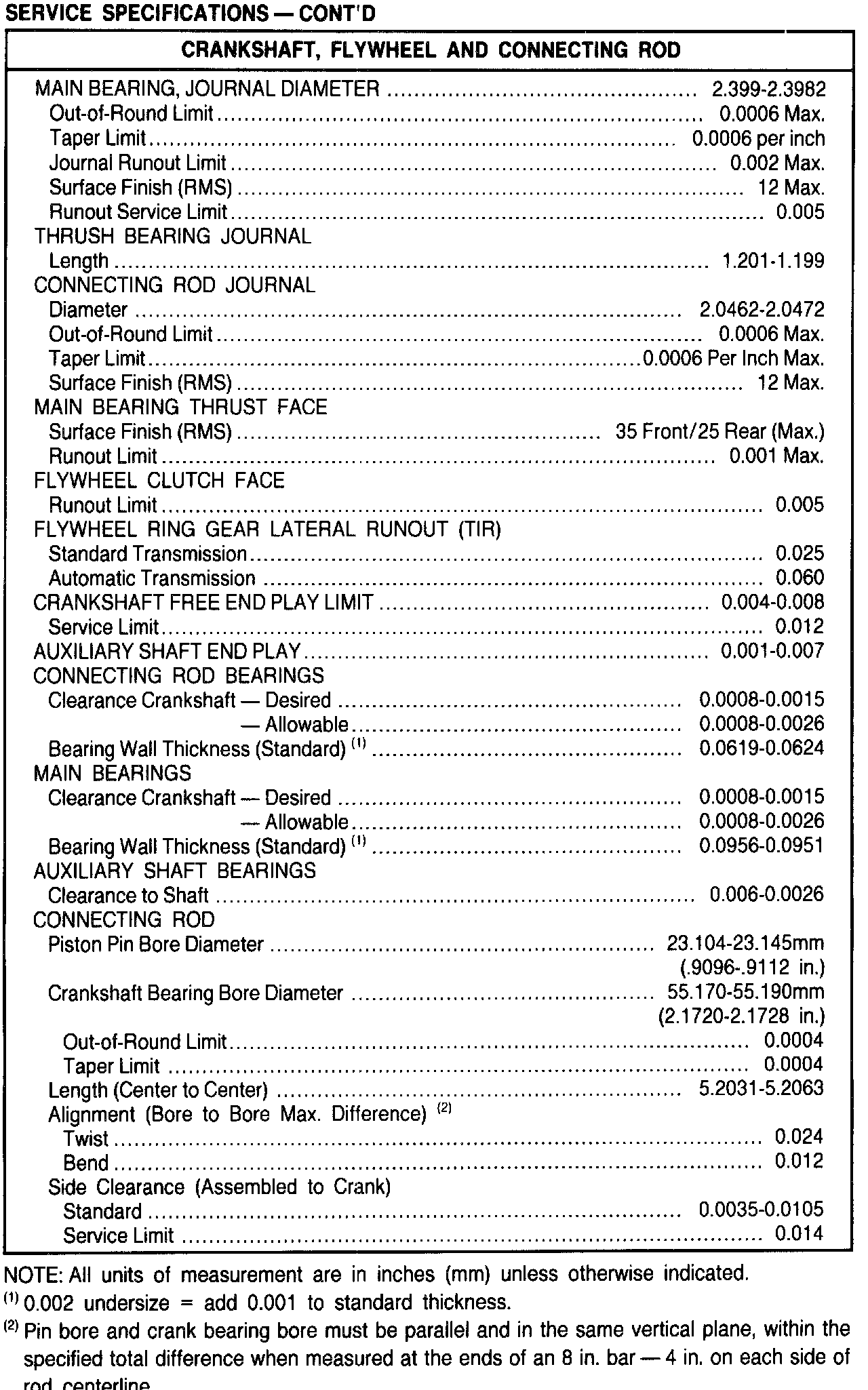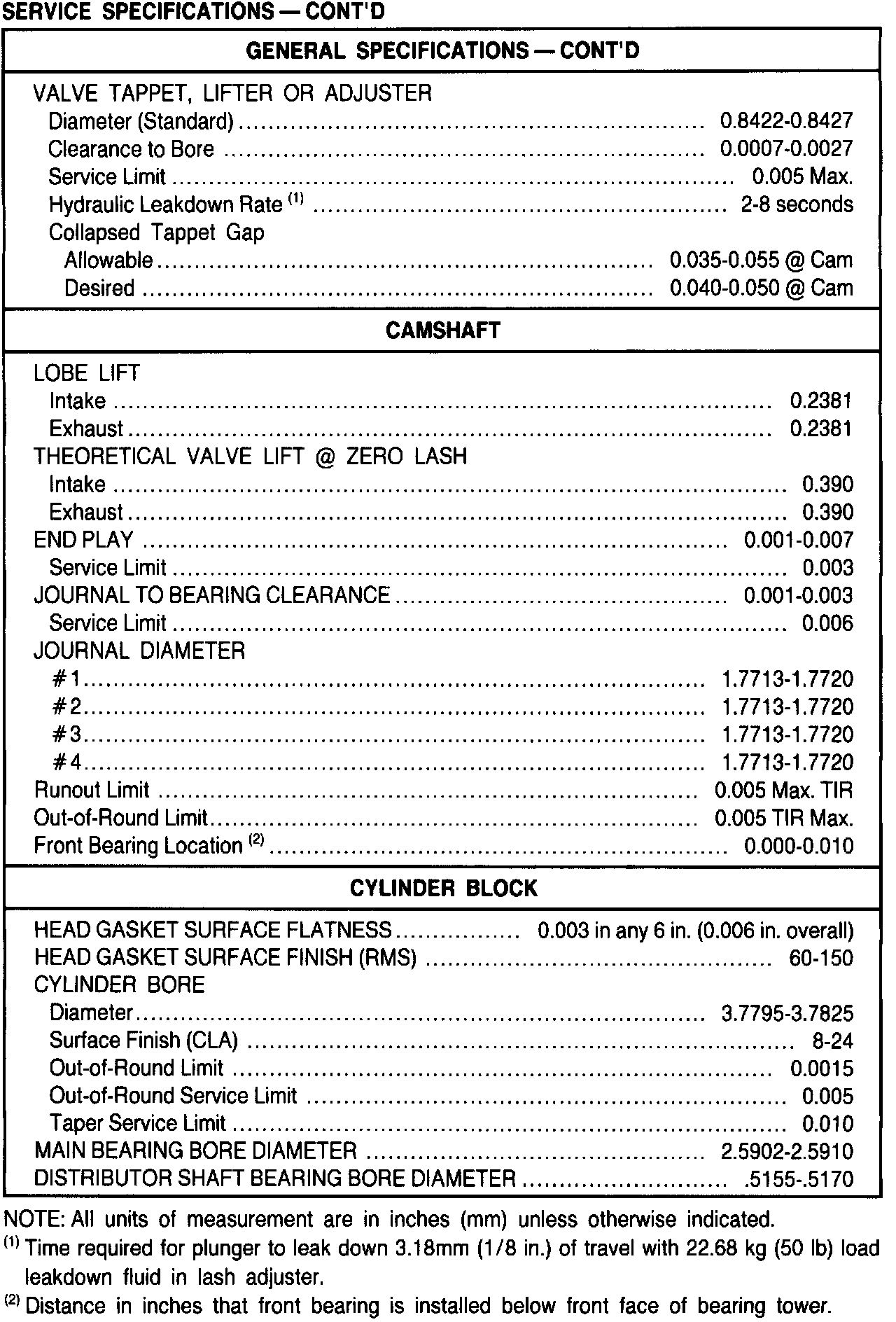 General Engine Specifications