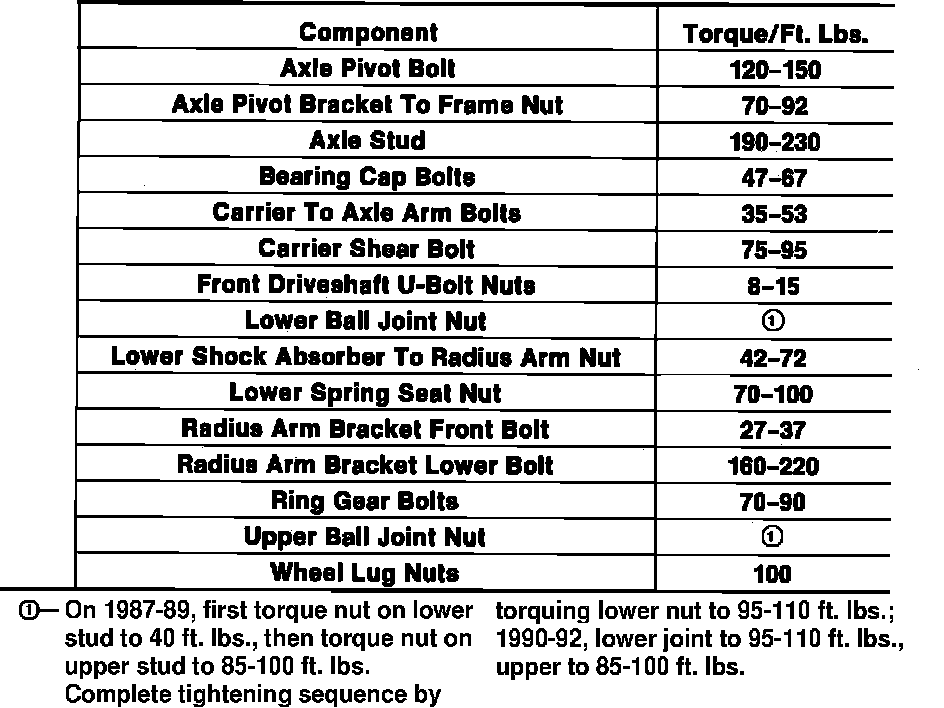 Tightening Specifications: