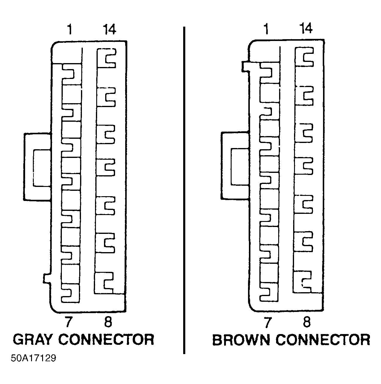 - Using a voltmeter, check voltage between pins No. 2 and 13 of Brown connector. If reading is 10 volts or more, go to next step. If reading is less than 10 volts, check for open or shorts in circuit No. 54. See WIRING DIAGRAMS . Repeat QUICK TEST.