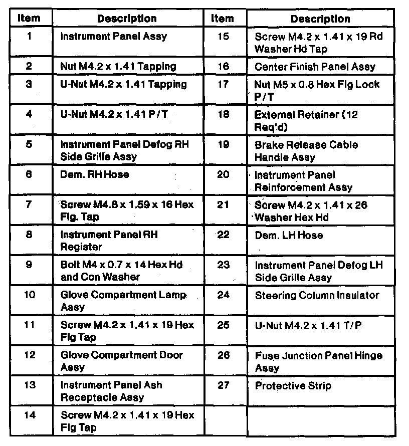Instrument Panel Exploded View