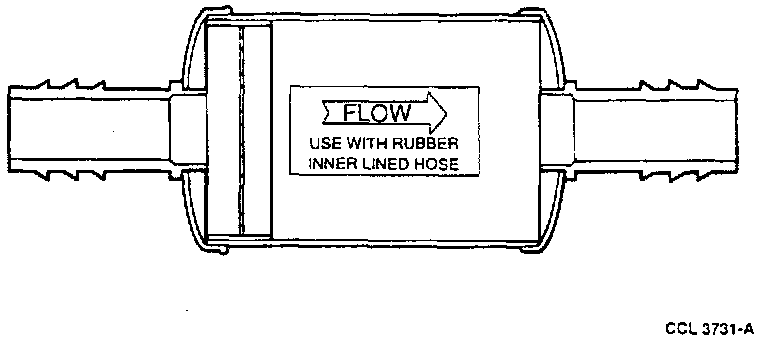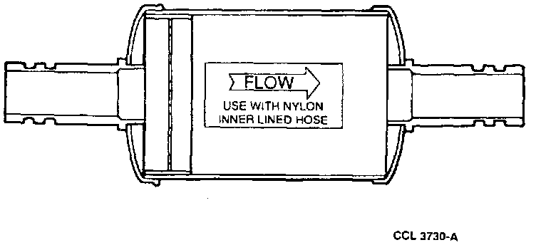 8. Get the proper service kit for the vehicle. Filter kits with the service part number suffix "A" are to be used on vehicles with a nylon lined suction hose. Filter kits with the service part number suffix "B" are for vehicles with rubber lined suction hose. The label on the filter shows which hose it is to be used with.