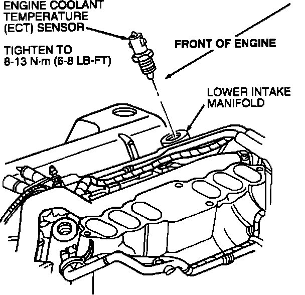 1. Locate Engine Coolant Temperature (ECT) sensor located at the rear of the intake manifold.