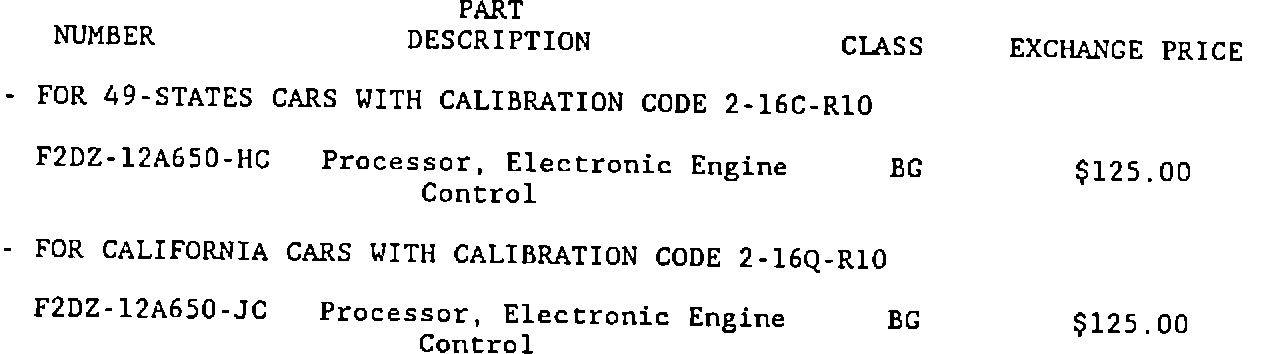 Home >> Ford >> 1992 >> Taurus V6-232 3.8L >> Repair and Diagnosis >> Powertrain Management >> Computers and Control Systems >> Engine Control Module >> Technical Service Bulletins >> Recalls >> Recall - EEC Processor Replacement >> Labor and Parts Info Attachment II