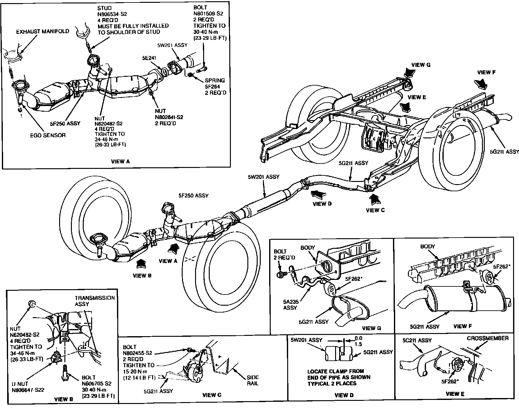 13. Lower the vehicle, START the engine, and check for exhaust leaks.