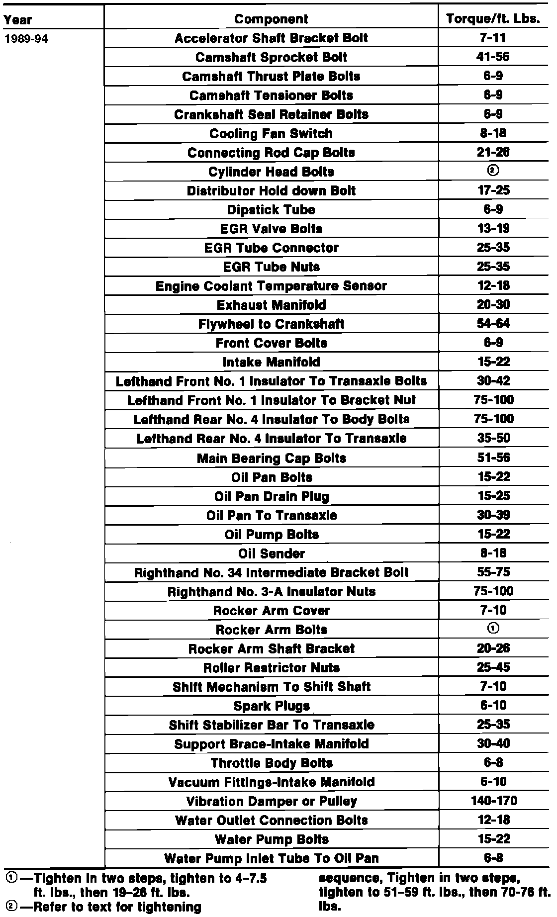Tightening Specifications:
