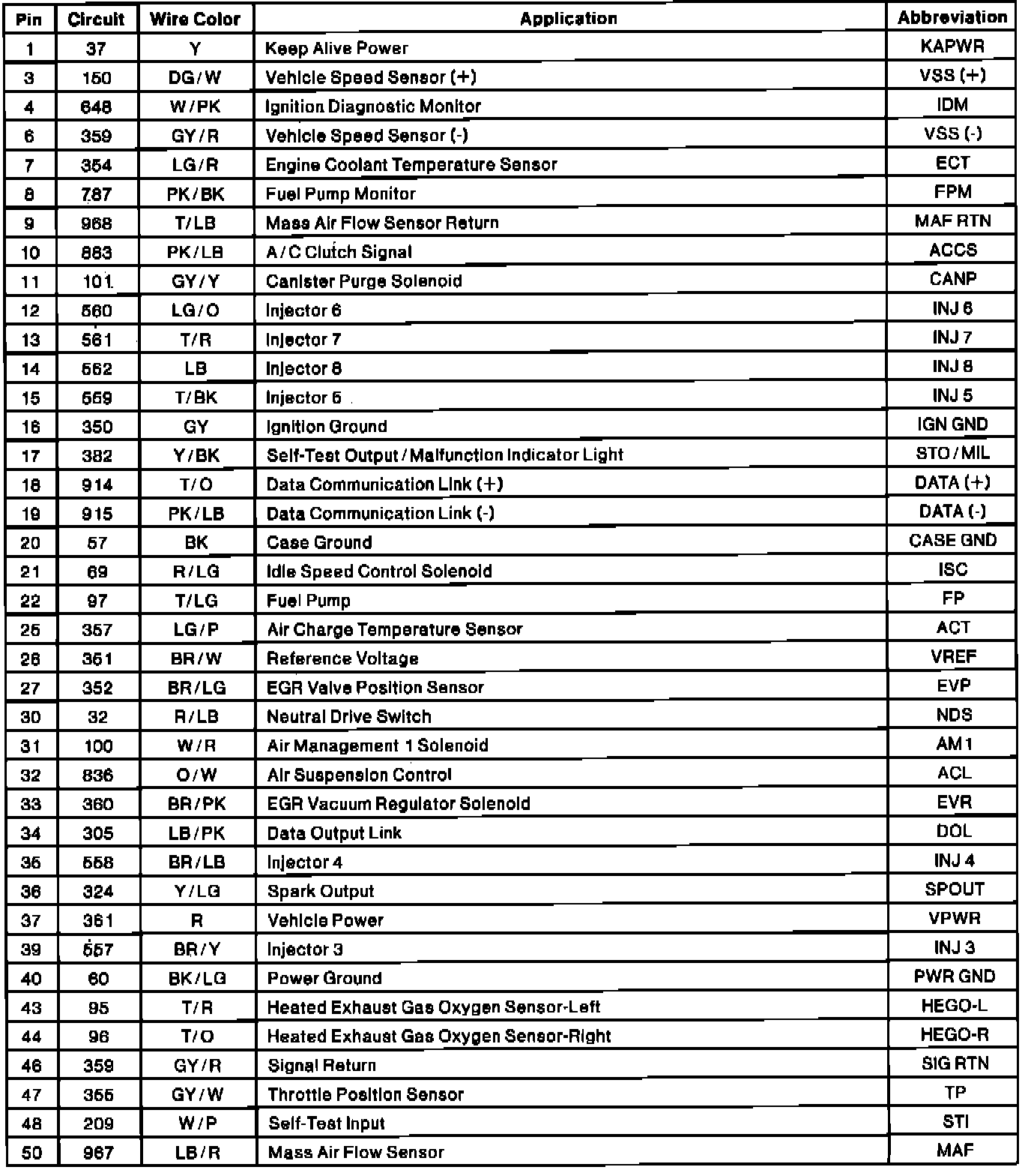 Electronic Engine Controller Connector Pinout: