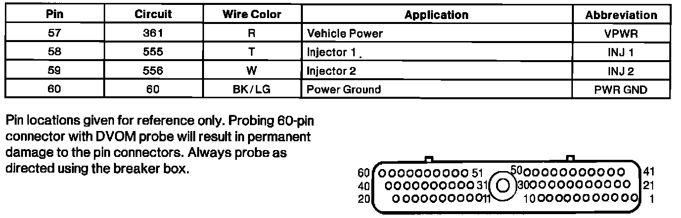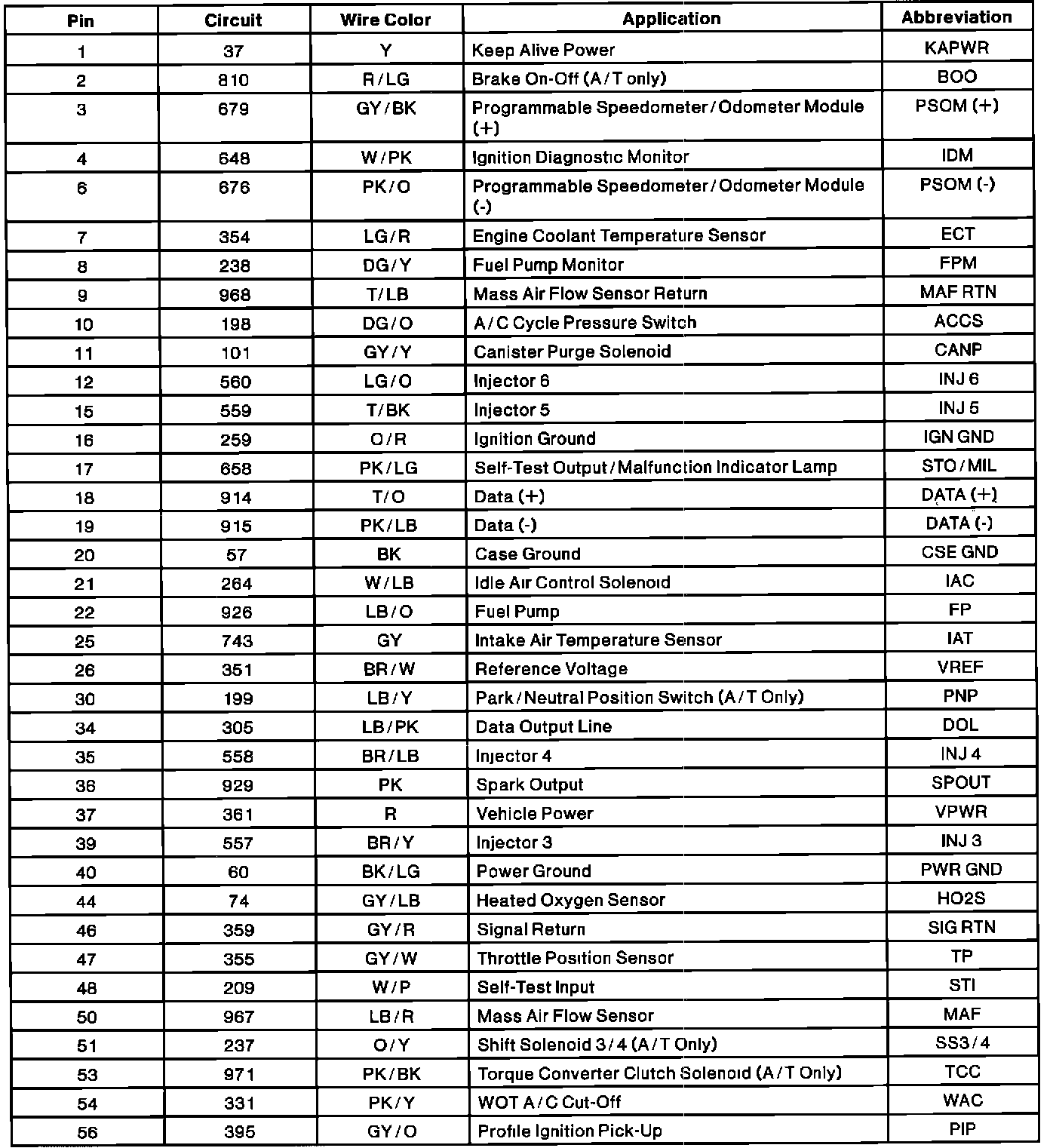 Powertrain Control Module (PCM) Connector Pin Useage: