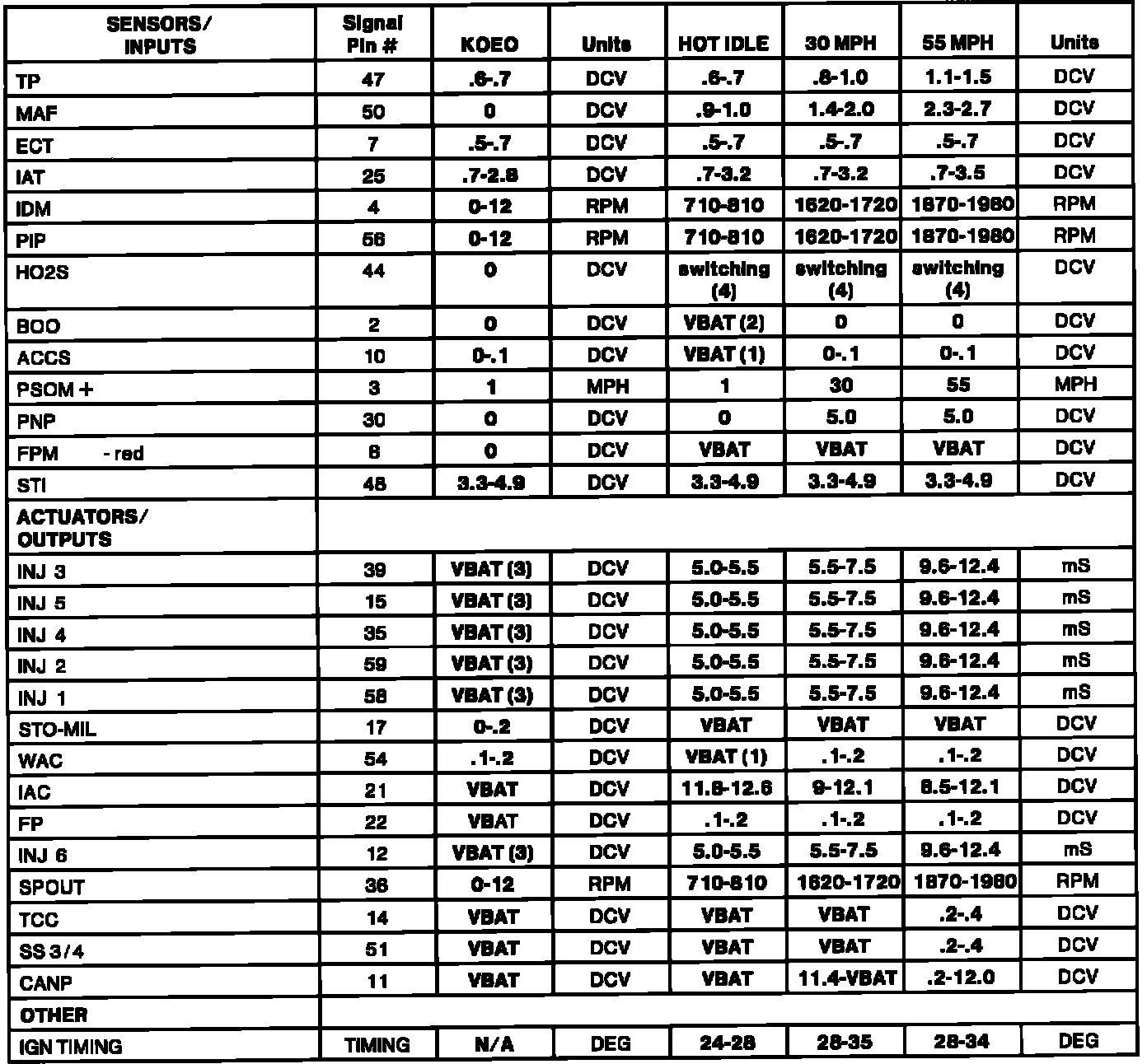 (4) -- HO2S should switch from rich (red LED) to lean (green LED), or lean to rich, at least once every 3 seconds. HO2S voltage should toggle above and below .450 DCV and should never be a negative value.
