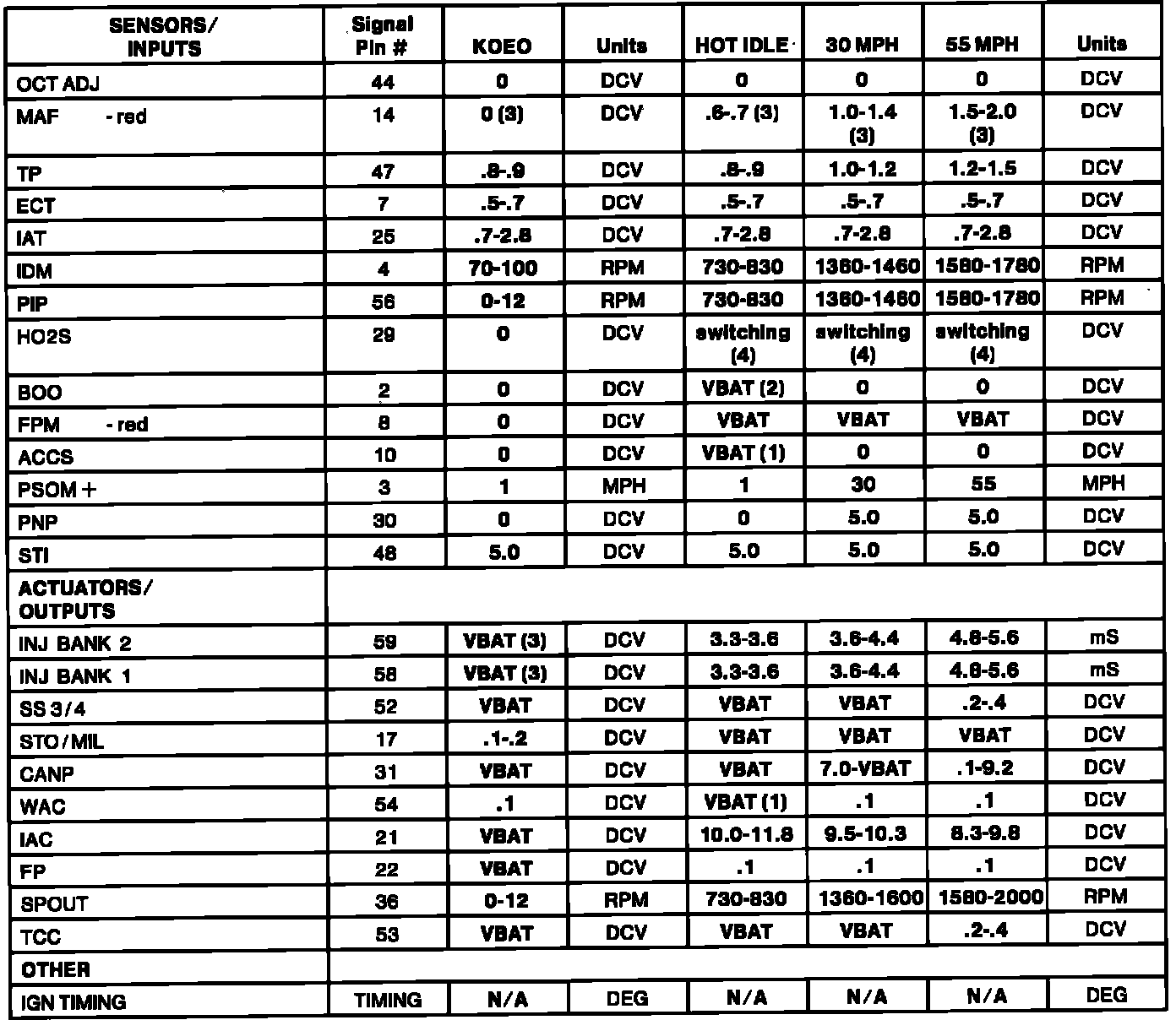 Home >> Ford >> 1993 >> Aerostar AWD V6-245 4.0L >> Repair and Diagnosis >> Specifications >> Electrical Specifications >> Computers and Control Systems >> System Specifications >> Sensor Functional Range Chart