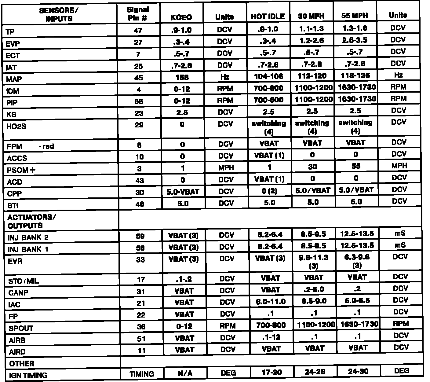(4) -- HO2S should switch from rich (red LED) to lean (green LED), or lean to rich, at least once every 3 seconds. HO2S voltage should toggle above and below .450 DCV and should never be a negative value.