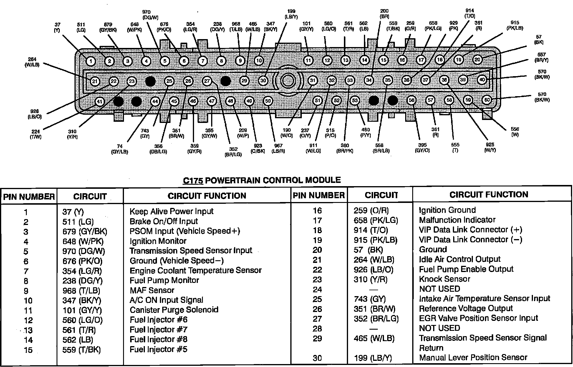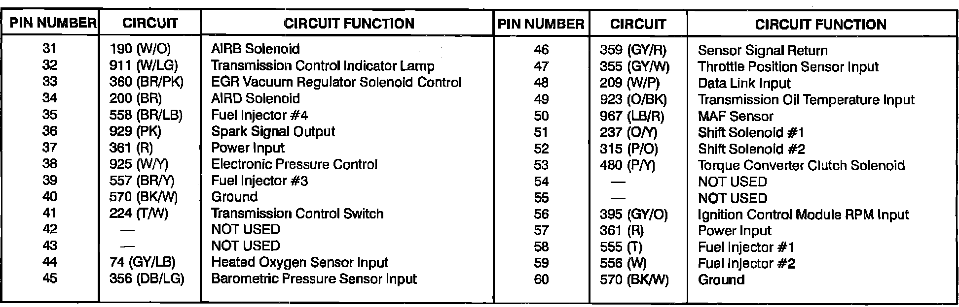 Powertrain Control Module Circuit Function,5.0L SFI: