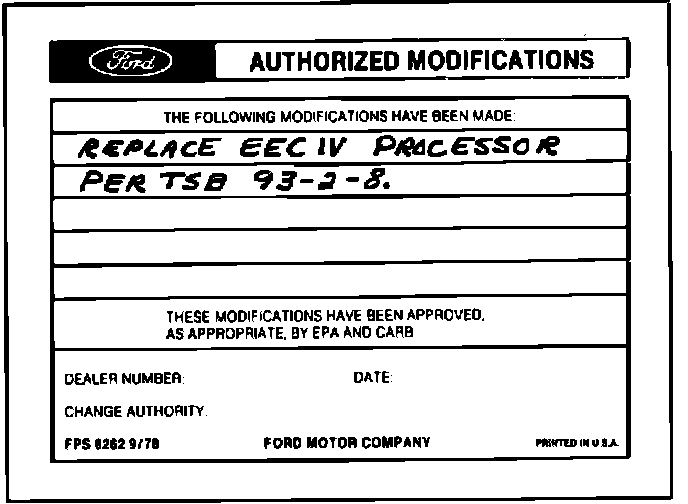 2. If the calibration conversion involves a 1993 (49 State/Calibration 2-54L-R12) 5.0L equipped F-150 with E40D transmission and 3.08 gear ratio rear axle assembly, it will need to have a 3.55 gear ratio rear axle assembly installed in addition to having the EEC IV Processor replaced.
