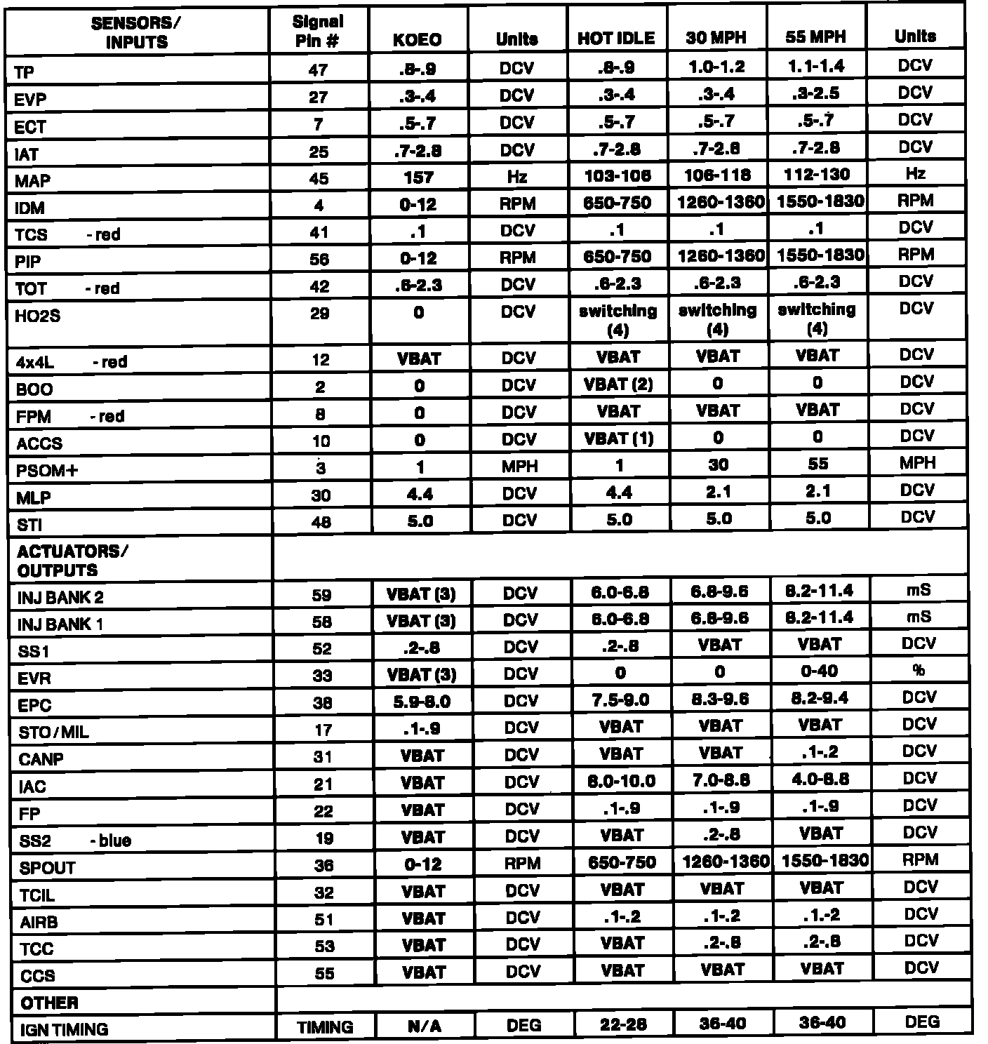 (4) -- HO2S should switch from rich (red LED) to lean (green LED), or lean to rich, at least once every 3 seconds. HO2S voltage should toggle above and below .450 DCV and should never be a negative value.