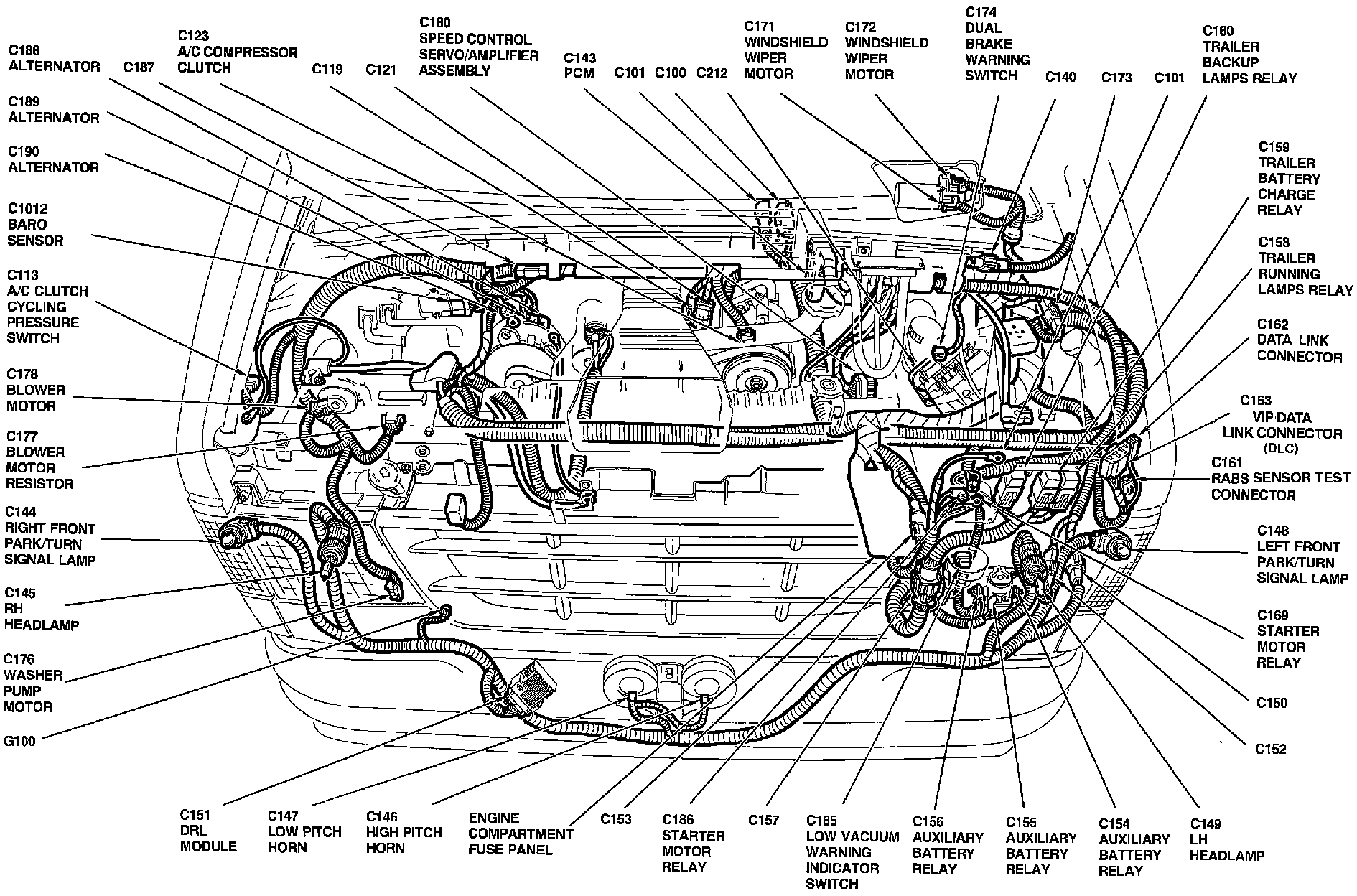 , connector numbers C-162 and C-163, are located on the left side of the engine compartment, near the park/turn lamp.
