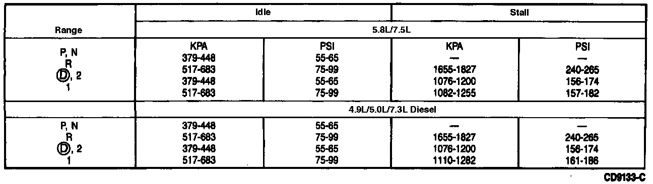 Line Pressure Specifications.: