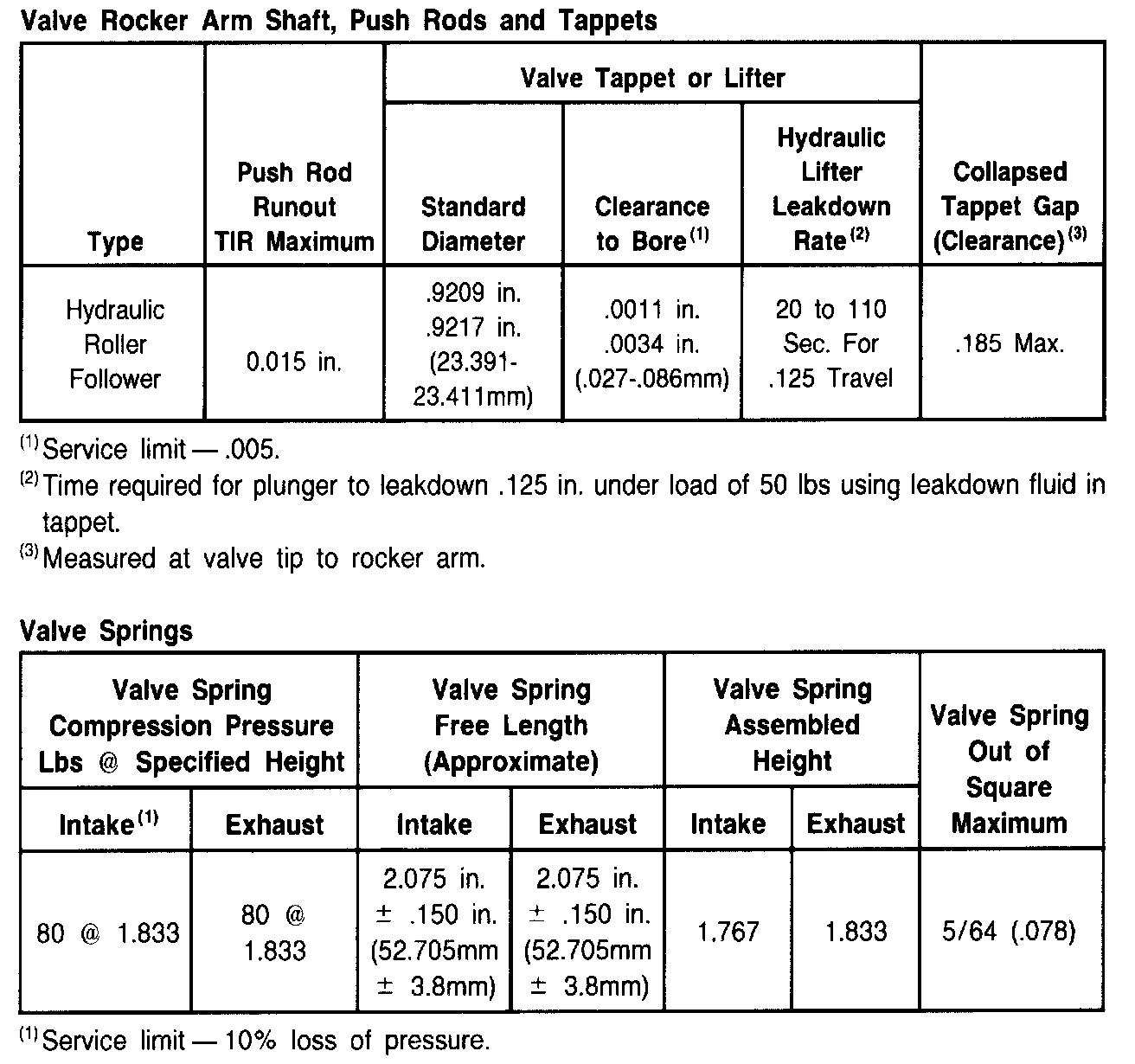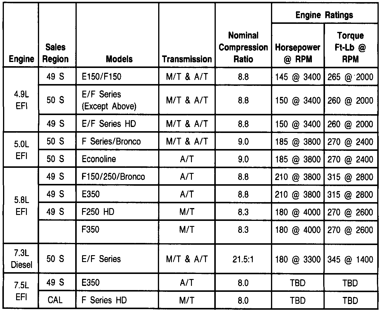 NOTE 1: Vehicles listed as CAN are over 6000 GVWR, and are equipped with unique leaded fuel calibrations. Ratings of Canadian vehicles not shown as unique are identical to 49- or 50-State applications.
