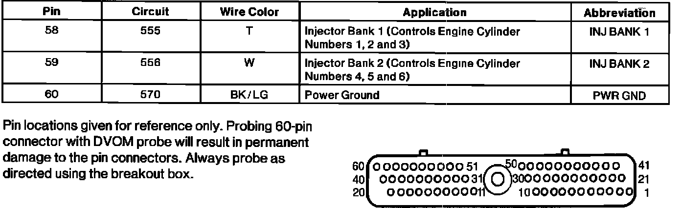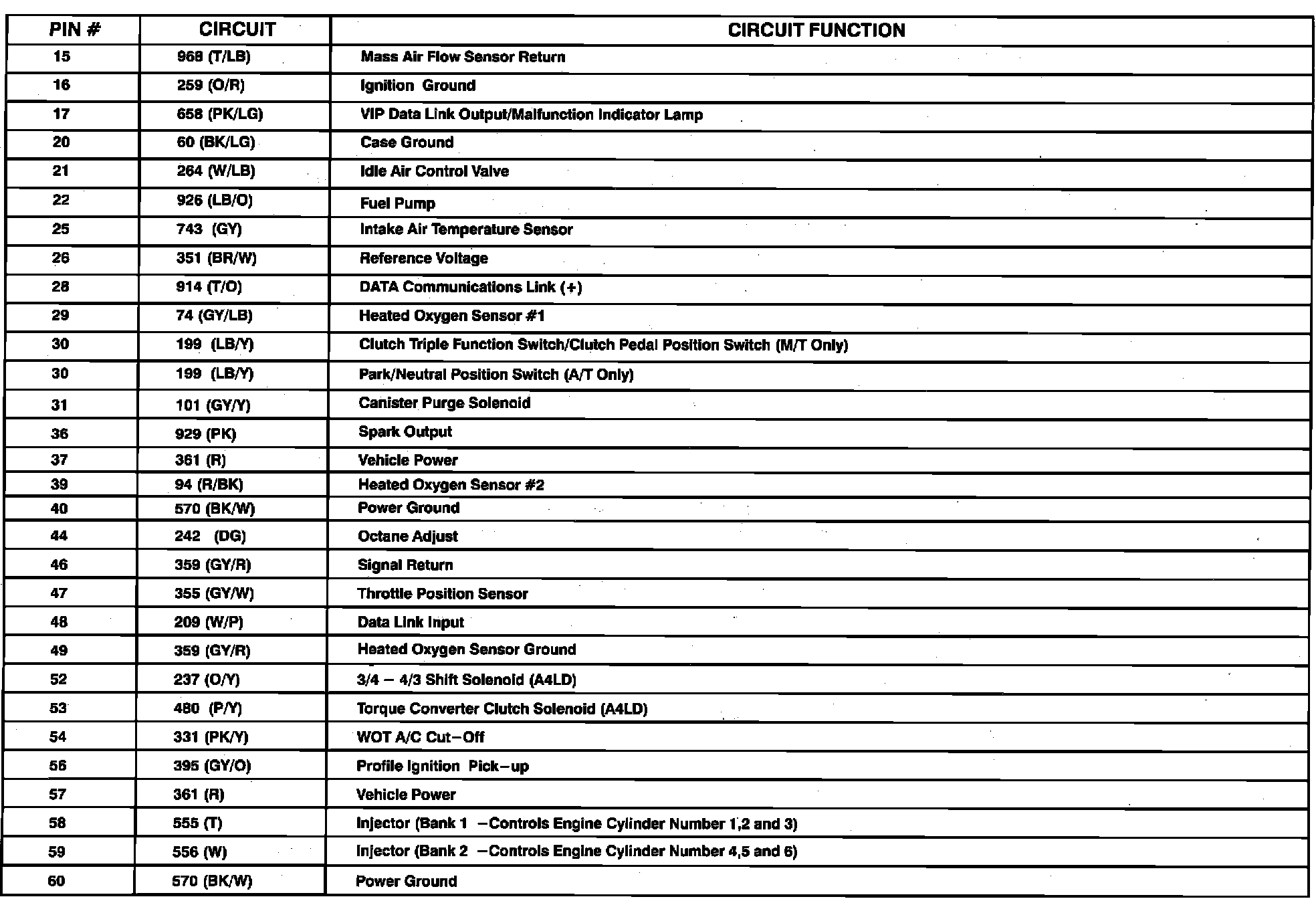 Powertrain Control Module (PCM) Connector Pin Useage: