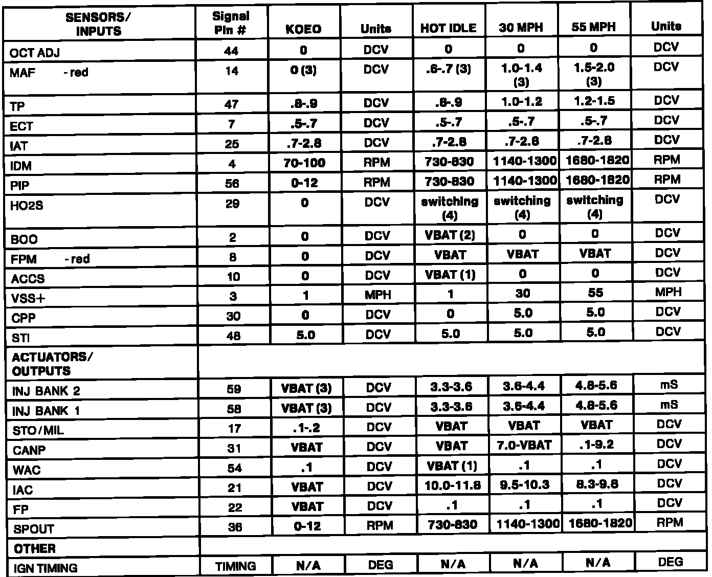 Home >> Ford >> 1993 >> Explorer 2WD V6-245 4.0L >> Repair and Diagnosis >> Specifications >> Electrical Specifications >> Computers and Control Systems >> System Specifications >> Sensor Functional Range Chart >> Automatic Transmission >> Federal (49 States)