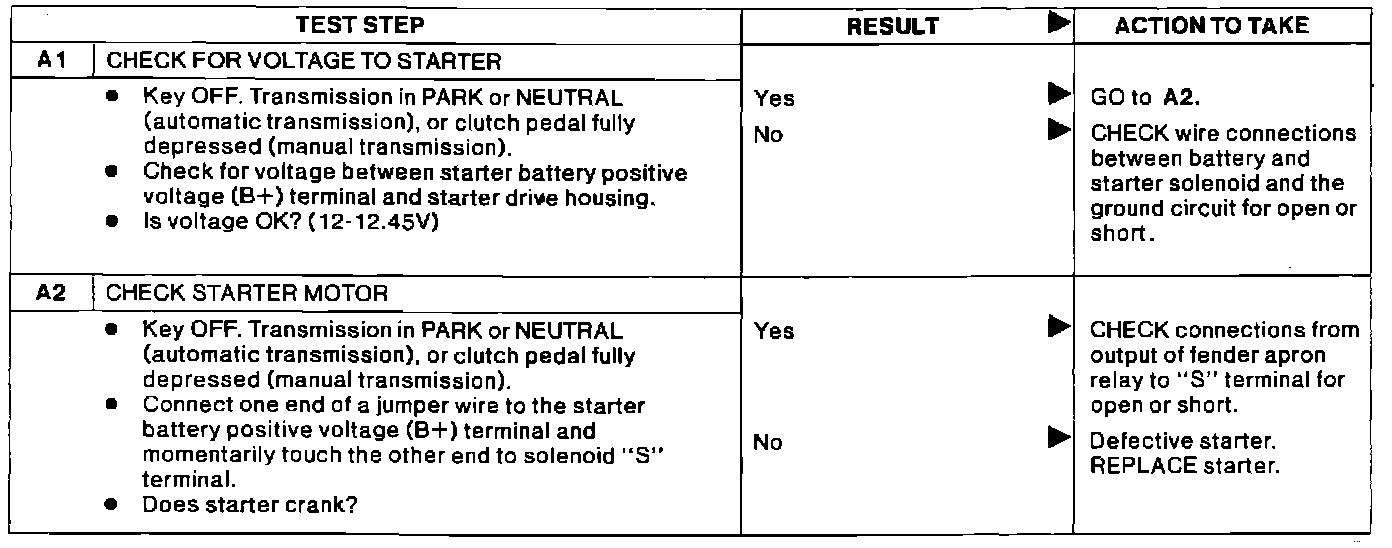 Test A, Check Starter Motor: