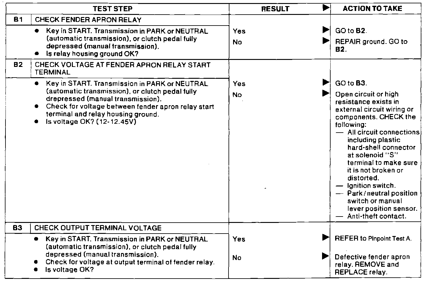 Test B, Check Fender Apron Relay: