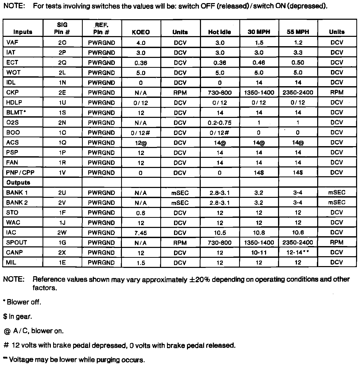 Normal Scan Data Values (Includes PID's)