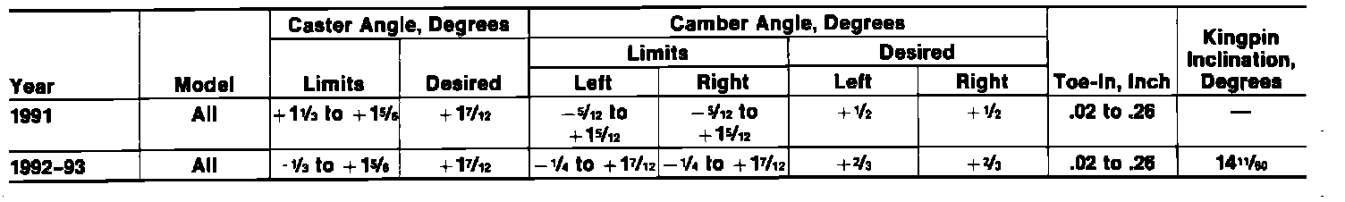 Wheel Alignment Specifications: