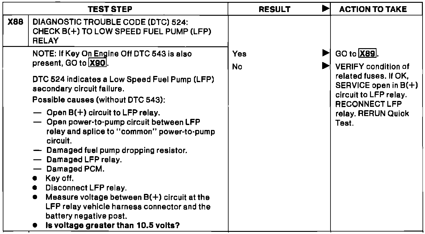 X88 - Code 524: Check B+ to Low Speed Fuel Pump Relay