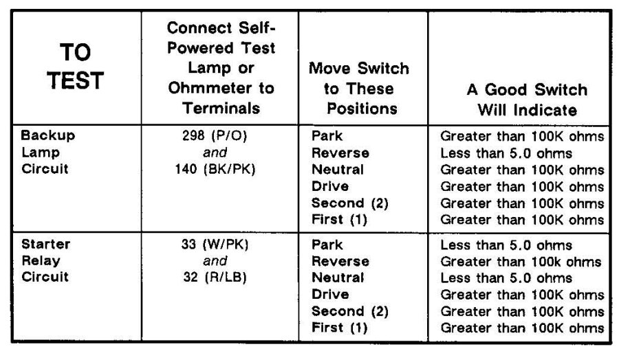 Transmission Position Sensor/Switch: Testing and Inspection